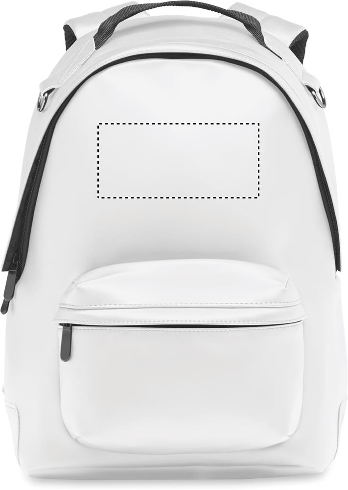 Rucksack aus weichem PU. 15'''' Laptop Fach. Fronttasche mit Reißverschluss. Gepolsterter Rücken und verstärkter Boden. Futter aus 210D RPET.