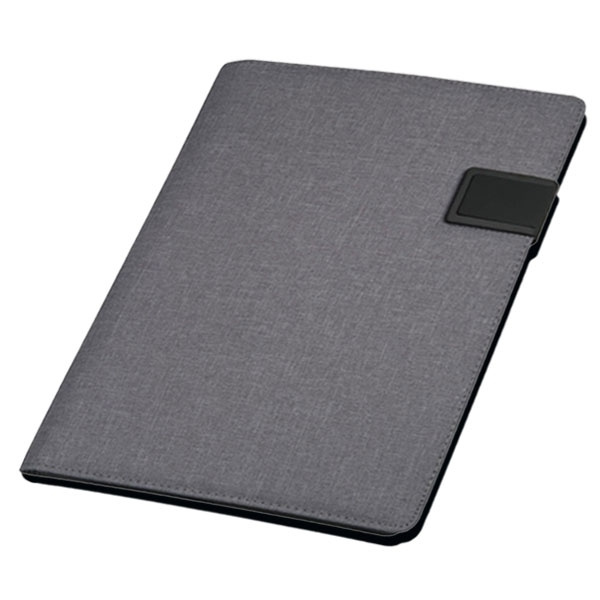 DIN A4 Mappe mit diversen Fächern und Schlaufen, Handyfach, Schreibblock (20 Seiten) und Magnetverschluss. Ihre Werbung drucken wir im Transferdruck auf die Vorderseite.