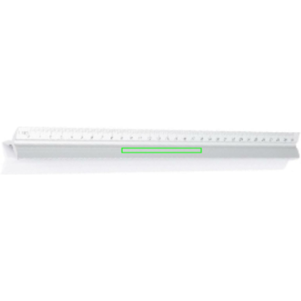 Aluminiumlineal mit 5 verschiedenen Skalen (1:20, 1:25, 1:50, 1:75 und 1:100); 1 Seite ist für die Werbeanbringung vorgesehen.