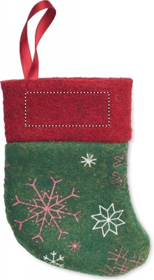 Dessert-Besteck, bestehend aus Löffel und Gabel aus Edelstahl und Serviette aus Baumwolle 150 g/m². Lieferung in kleinem Weihnachtsstiefel.