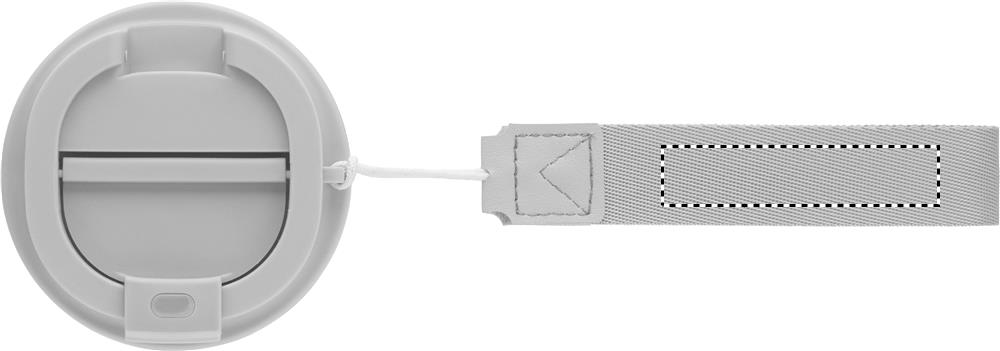 Doppelwandiger Becher aus recyceltem Edelstahl (90 % recycelter Edelstahl und 10 % Edelstahl). Oberfläche aus recyceltem PP. RPET-Schlaufe für das Handgelenk. Auslaufsicher. Füllmenge: 350 ml.