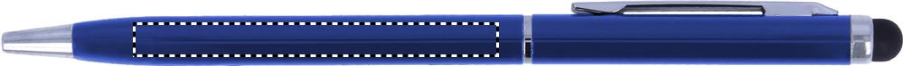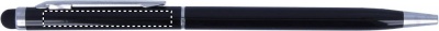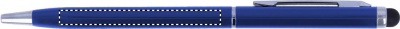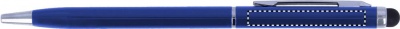 Drehkugelschreiber mit Stylus aus Aluminium. Mit glänzendem verchromten Clip. Blaue Tinte.