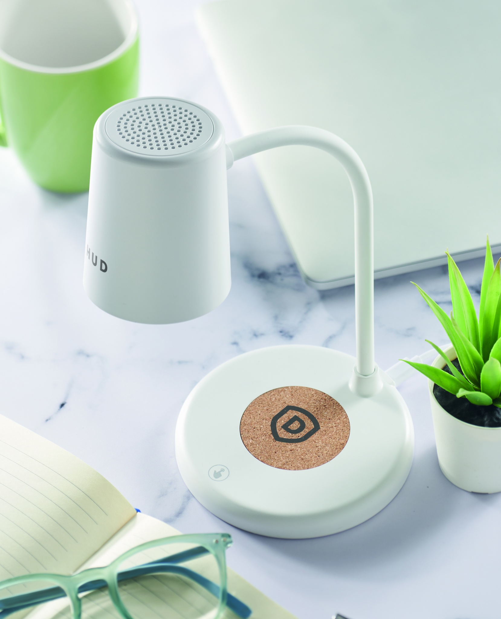 Tischleuchte mit kabelloser Ladestation 15W und 5.1 Wireless Lautsprecher. 3 Helligkeitsstufen: Tageslicht, Kaltlicht und natürliches Licht. Touch-Bedienung. Ausgang: DC5V/1A (5W). Kompatibel mit allen QI- fähigen Geräten wie den neuesten Android Smartphones, iPhone® 8 und X und höher.