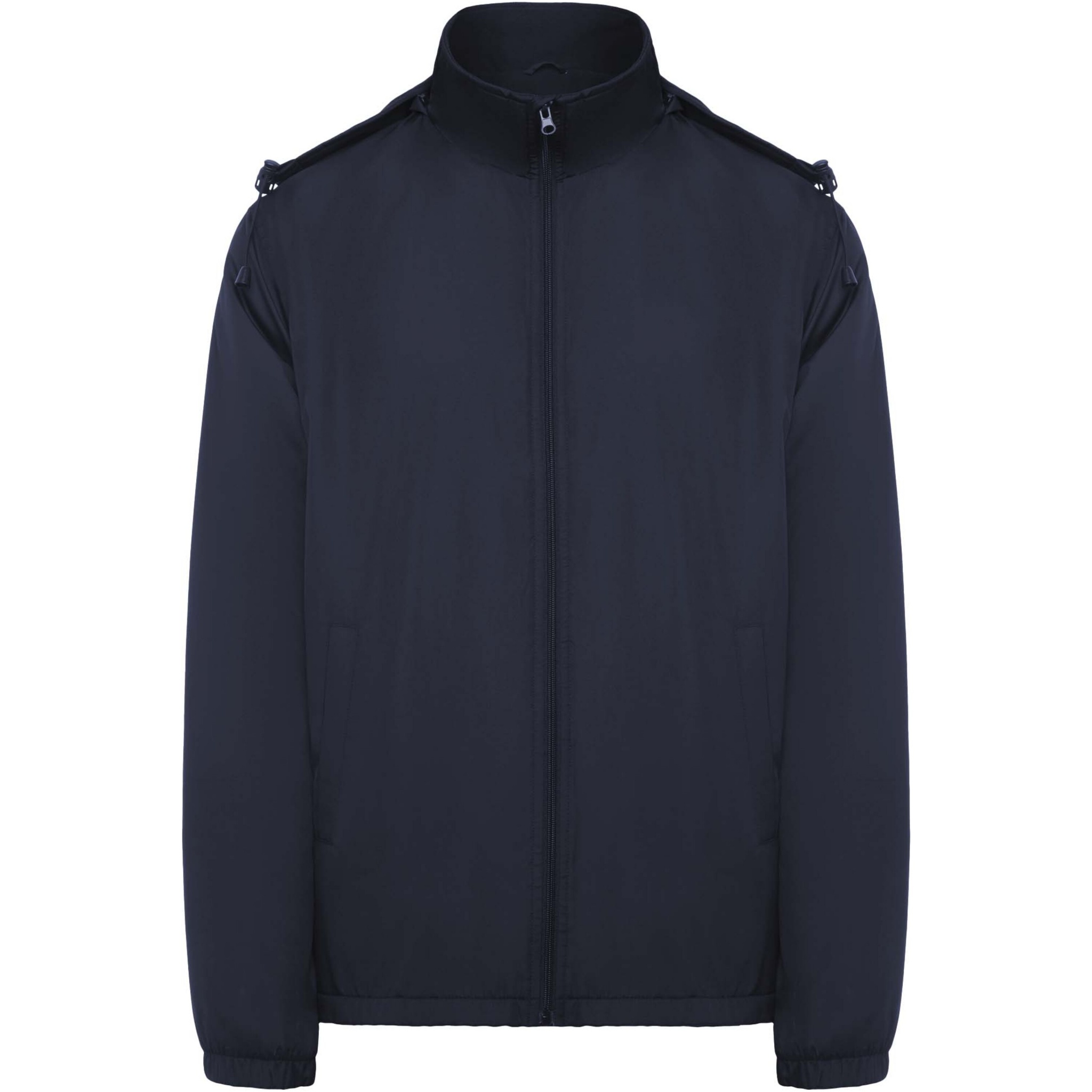 Leichte, wasserabweisende Jacke. Hoher Kragen und einrollbare, verstellbare Kapuze. Innenfutter aus Microfleece. Front-Reißverschluss und Kinnschutz. Elastische Ärmelbündchen. Zwei Seitentaschen mit Reißverschluss. Innere Brusttasche links. Herausnehmbares Etikett. Wasserabweisend. Winddicht. Das männliche Modell ist 184 cm groß und trägt Größe L, das weibliche Modell ist 174 cm groß und trägt Größe S.