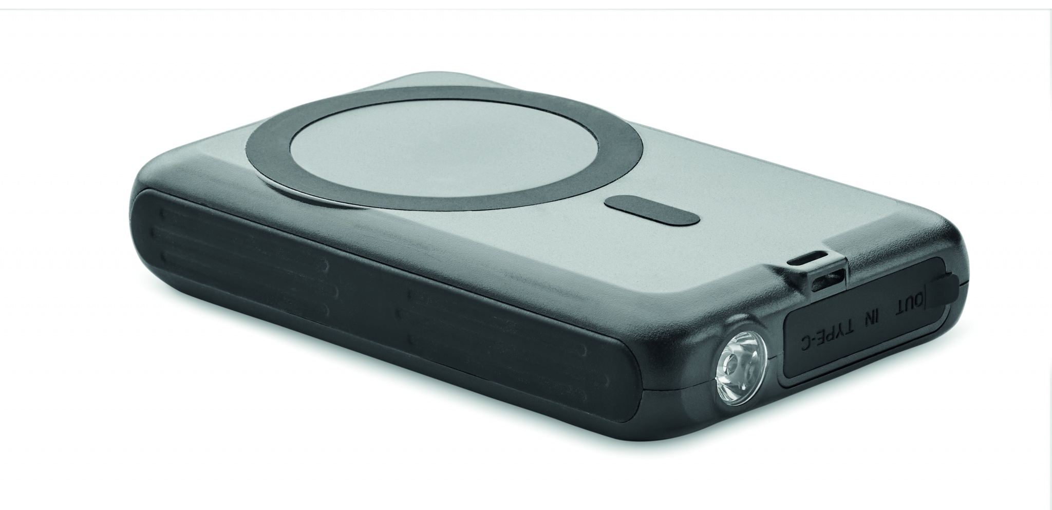 Induktives, magnetisches Ladegerät 5W mit Powerbank 5000 mAh mit Solarpanel. ABS. Ausgang: DC 5V/2A. Kompatibel mit iPhone® 12 und neueren Modellen. Inkl. magnetischen Metallring zur Unterstützung anderer nicht-magnetischer, wireless aufladbarer Smartphones.