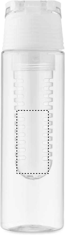 Trinkflasche aus RPET mit entnehmbarem Frucht-Aromafach. Henkel und auslaufsicherer Deckel. Füllmenge: 500 ml.