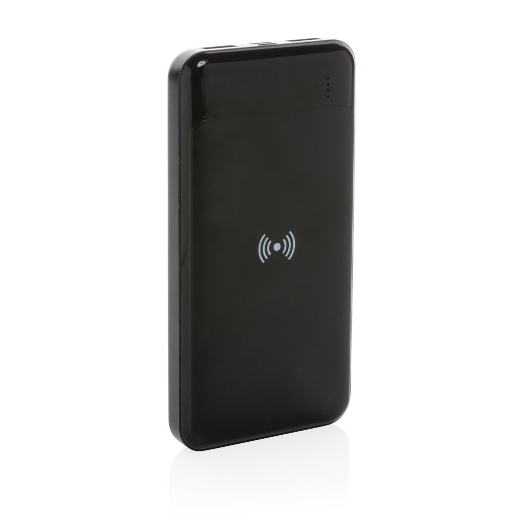 Wireless Powerbank aus RCS Standard recyceltem Kunststoff, Schwarz