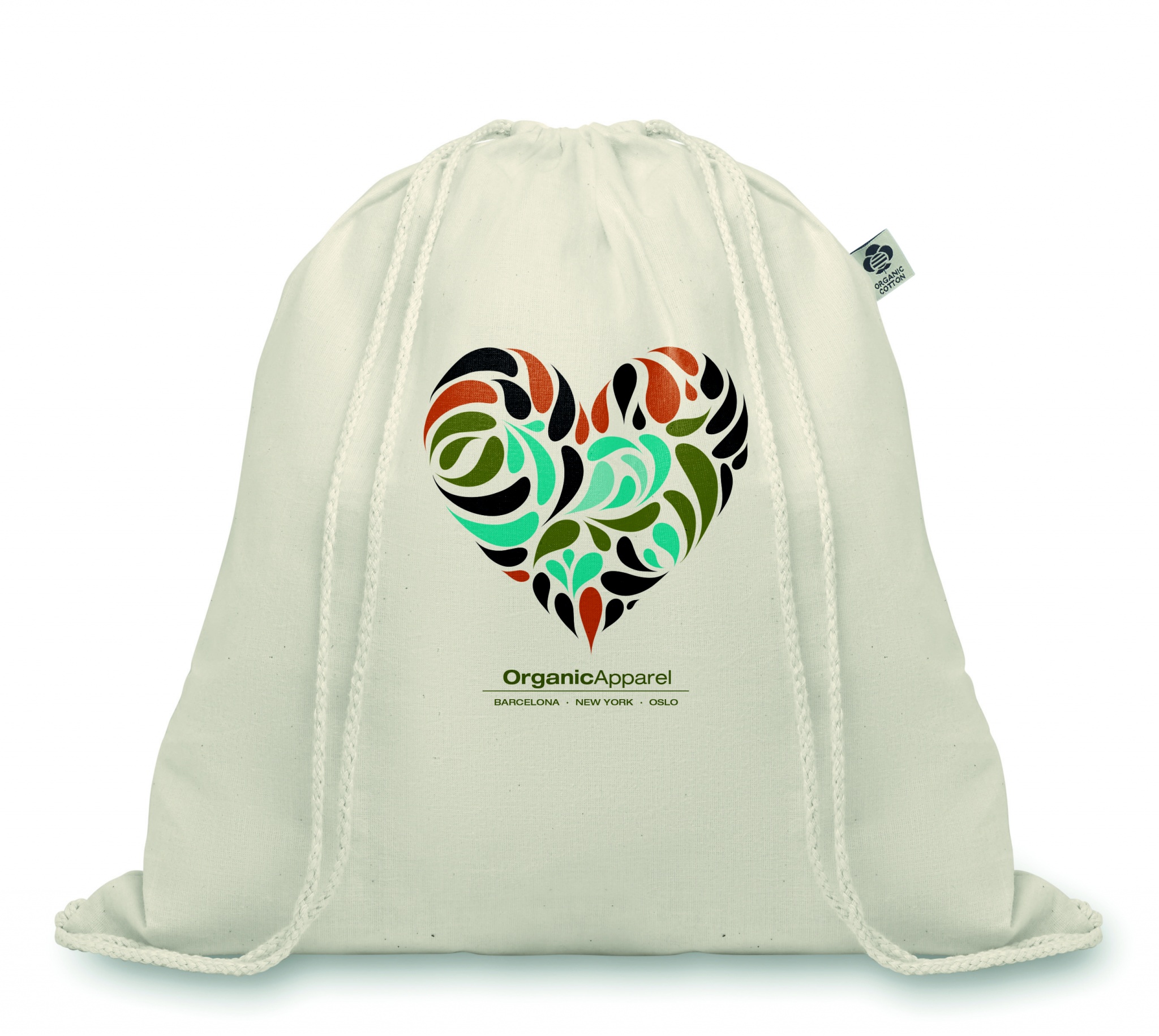Organic cotton drawstring bag in 105 gr/m².