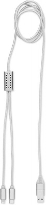Charging cable in aluminium with input: 2-in-1 type-C & type-A and micro-B (2 in 1 pin), Type C and micro B output. Cable length: 120cm.