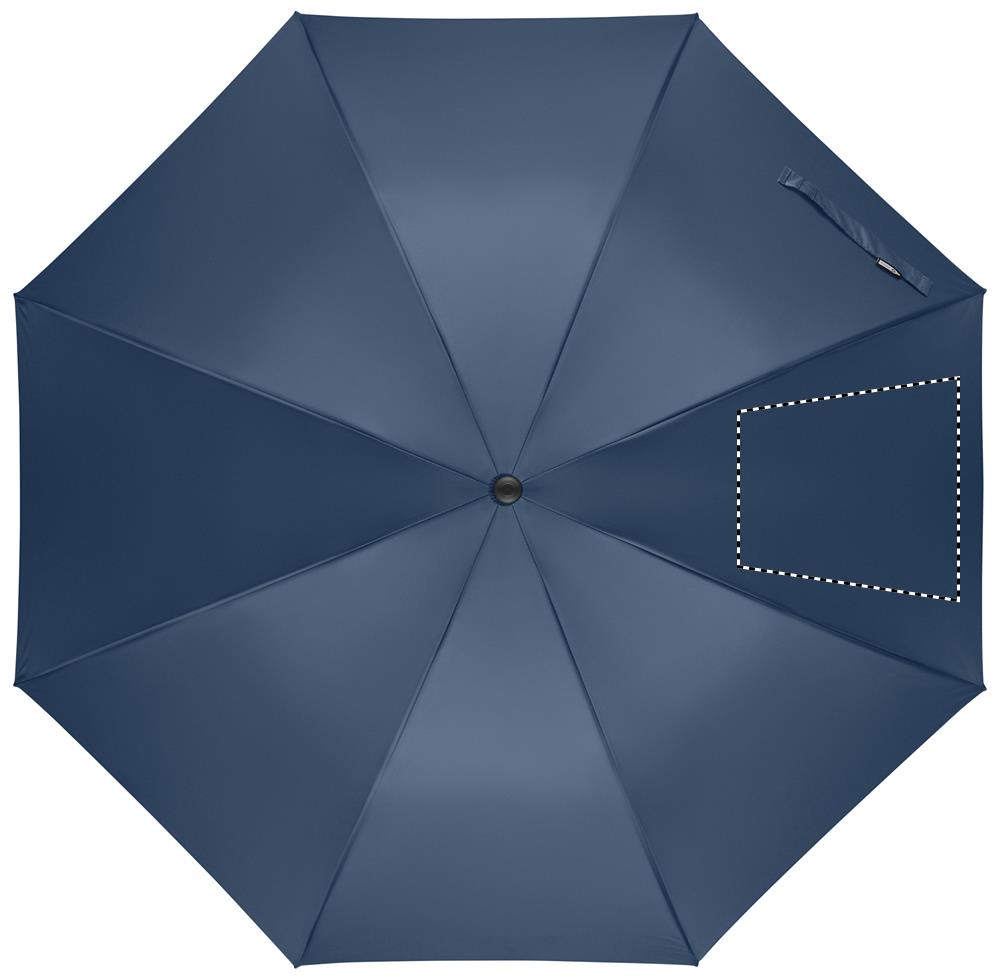 27 inch auto open wind-proof umbrella in 190T RPET pongee. Fibreglass shaft and ribs. Wheatstraw and recycled ABS handle. Plastic tips and top.