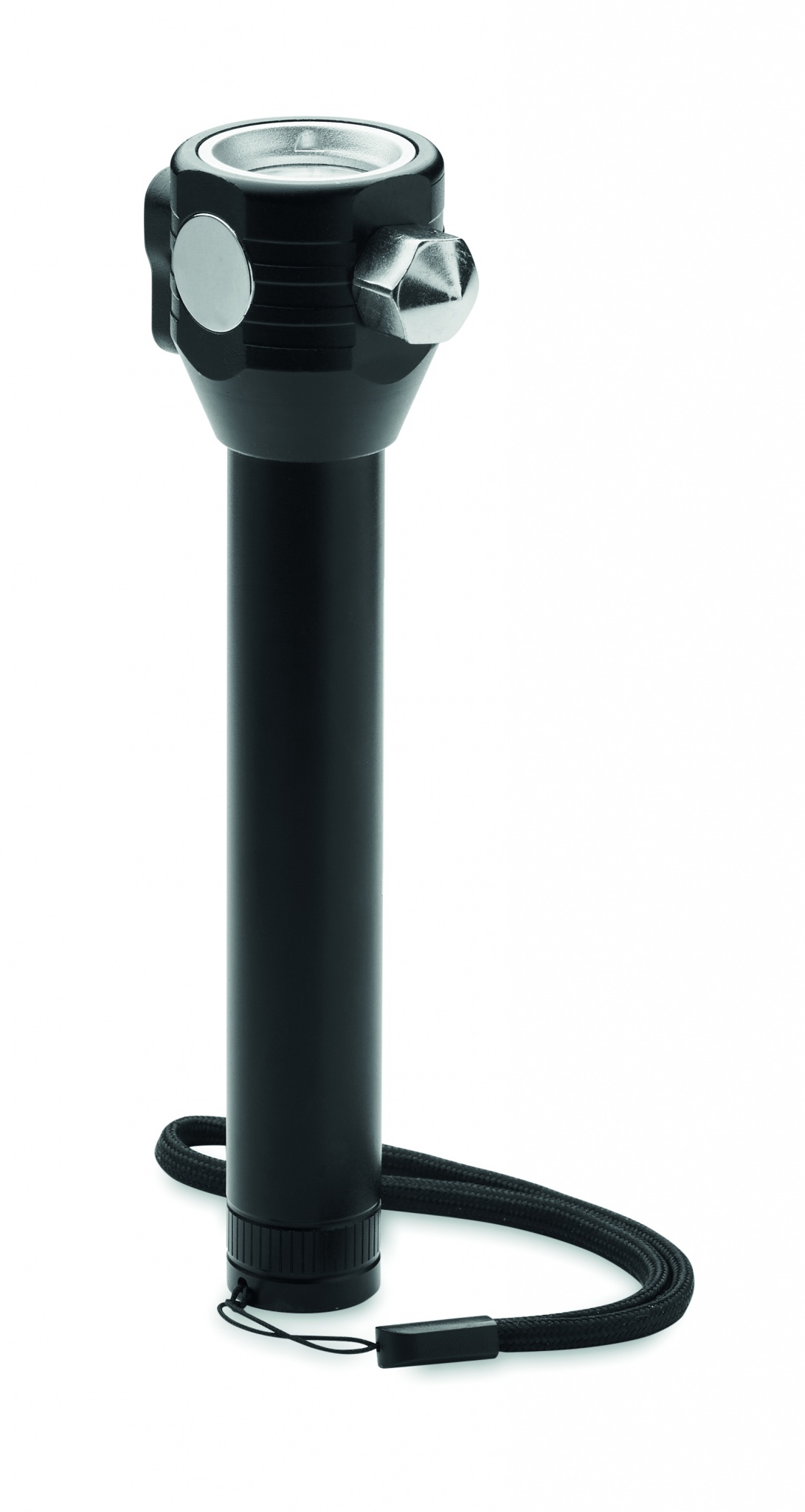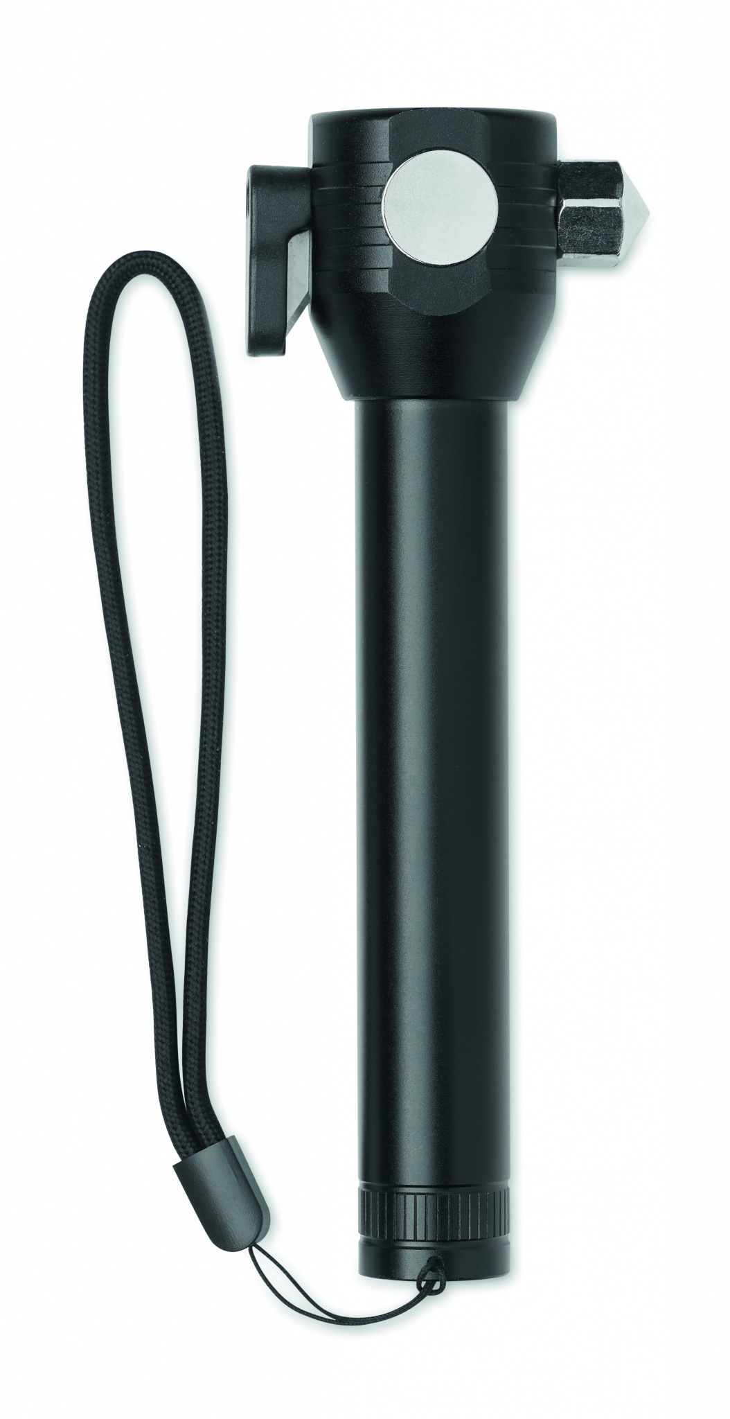 Logo trade promotional products picture of: 3-in-1 aluminum flashlight with an emergency hammer and seatbelt cutter, customizable with printing