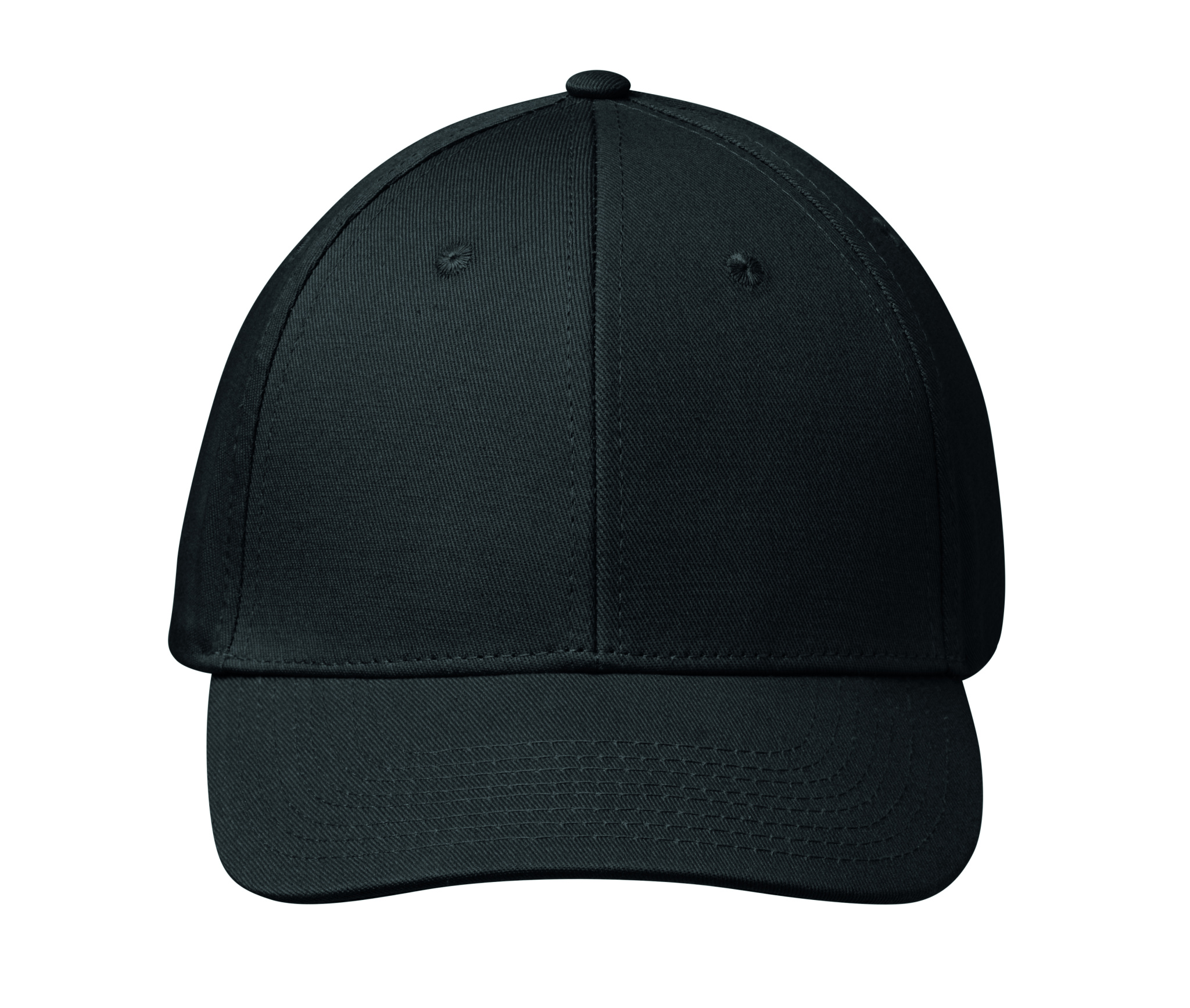 6 panel baseball cap in cotton twill 280 gr/m² with adjustable steel belt closure. Oxford peak. Washable. Size 7 1/4.