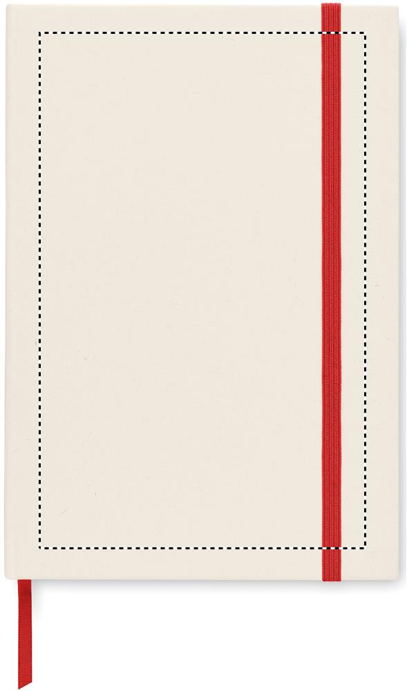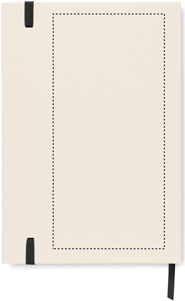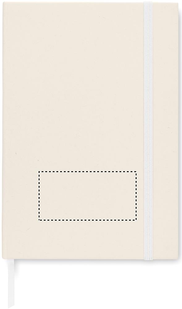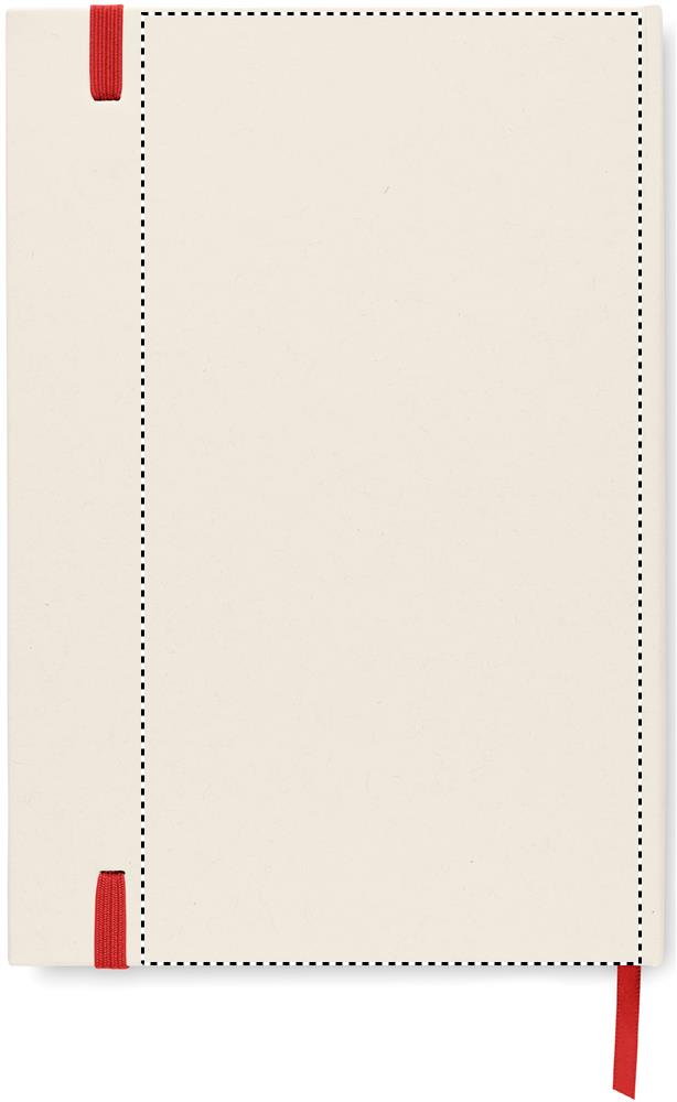 A5 notebook with hard cover made of 70% recycled milk carton pack and 30% recycled paper. Casebound. 160 lined pages (80 sheets 80 gsm) made of recycled paper. Elastic closure strap, ribbon bookmark.
