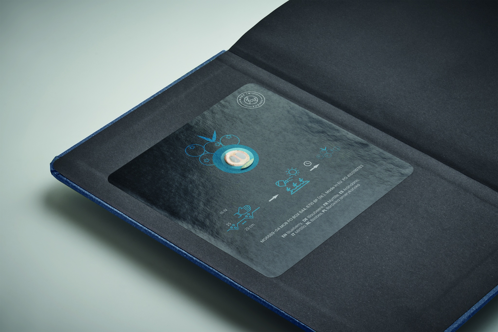 A5 notebook with sustainable hard paper cover. Casebound. 184 lined pages (92 sheets) in recycled paper. Cotton page-marker. Includes sowing seeds. Made in EU.