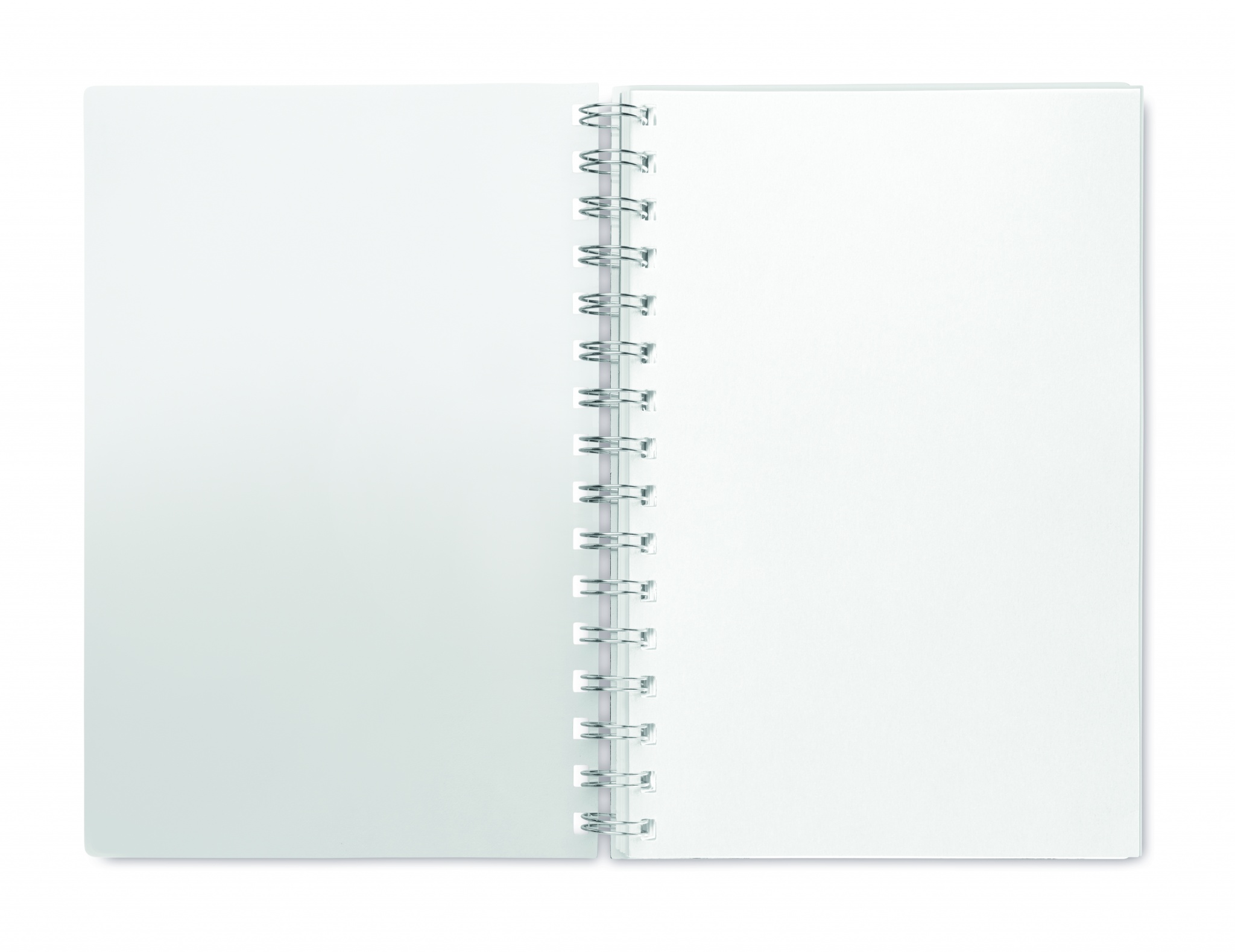 A5 notebook with RPET cover. Twin-wire. 160 recycled white lined pages (80 sheets).