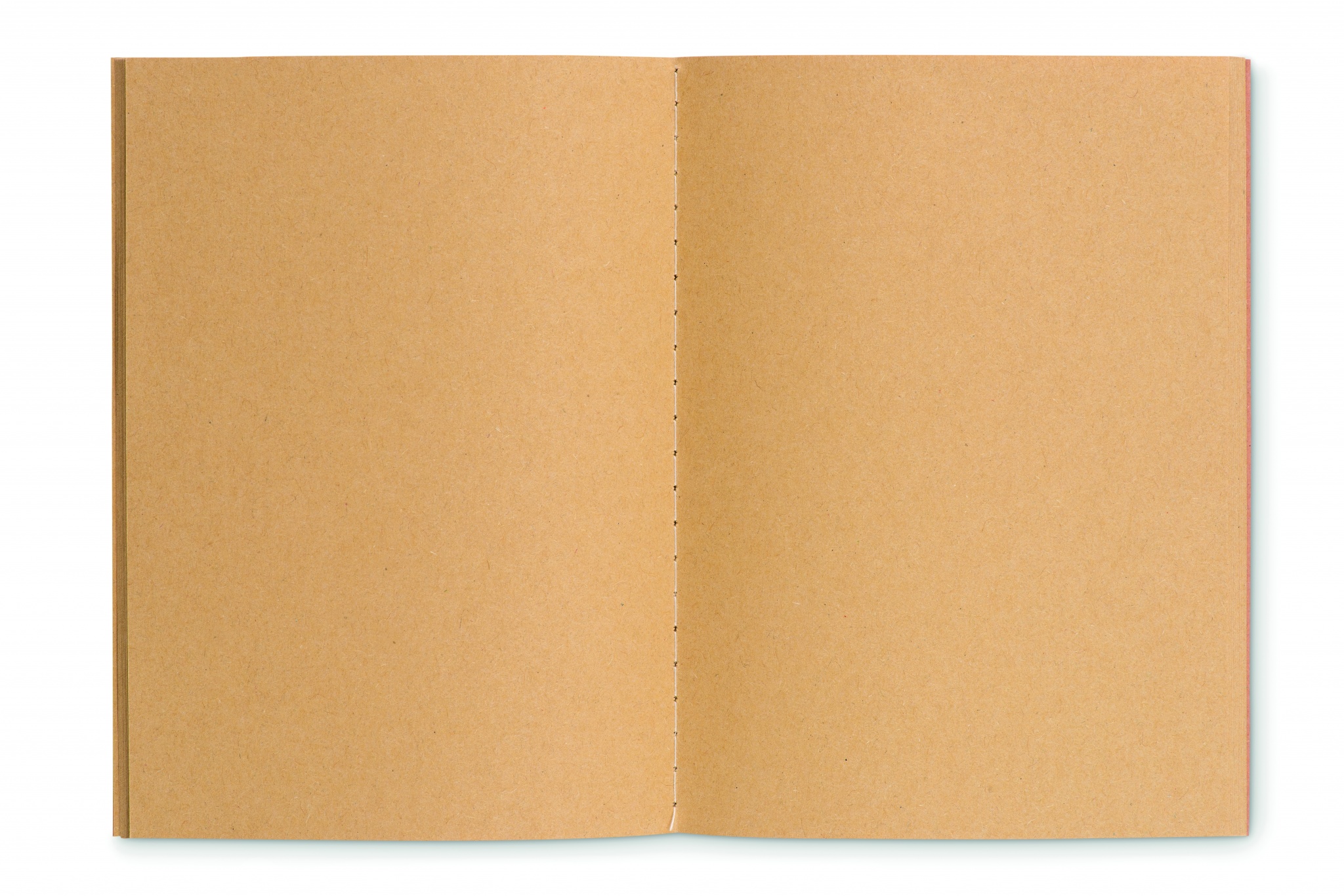 A6 recycled carton cover notebook. Sewn. 160 plain recycled paper pages (80 sheets).