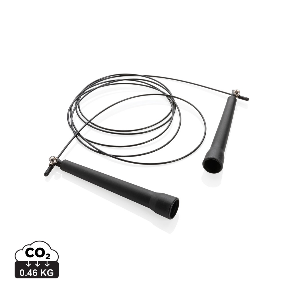 This adjustable jump rope is perfect for integrating high-intensity cardio training into any workout.Increases the heart rate, burns calories and enhances coordination. The length can be easily adjusted to accommodate different users. Made of super-lightweight plastic (PP) for optimal speed and comfortable handles. The jump rope comes in a black pouch for easy carrying.