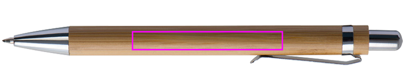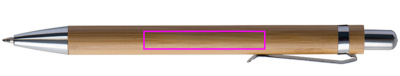 Ballpoint pen made of bamboo with blue writing large capacity refill. The finishing is done by laser engraving below the clip.