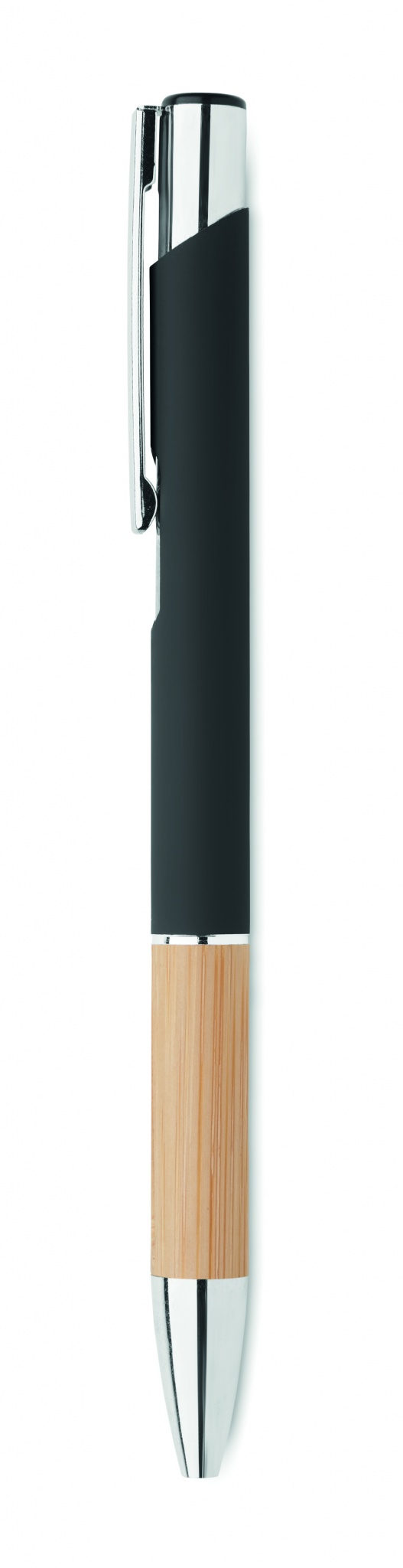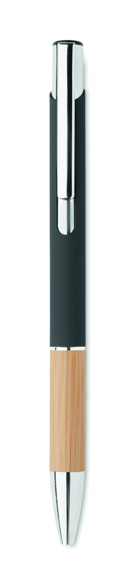 Ballpoint pen made of aluminum with a bamboo grip, Black