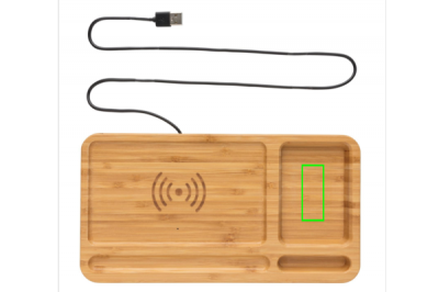 Logotrade promotional giveaway picture of: Bamboo desk organiser 10W wireless charger