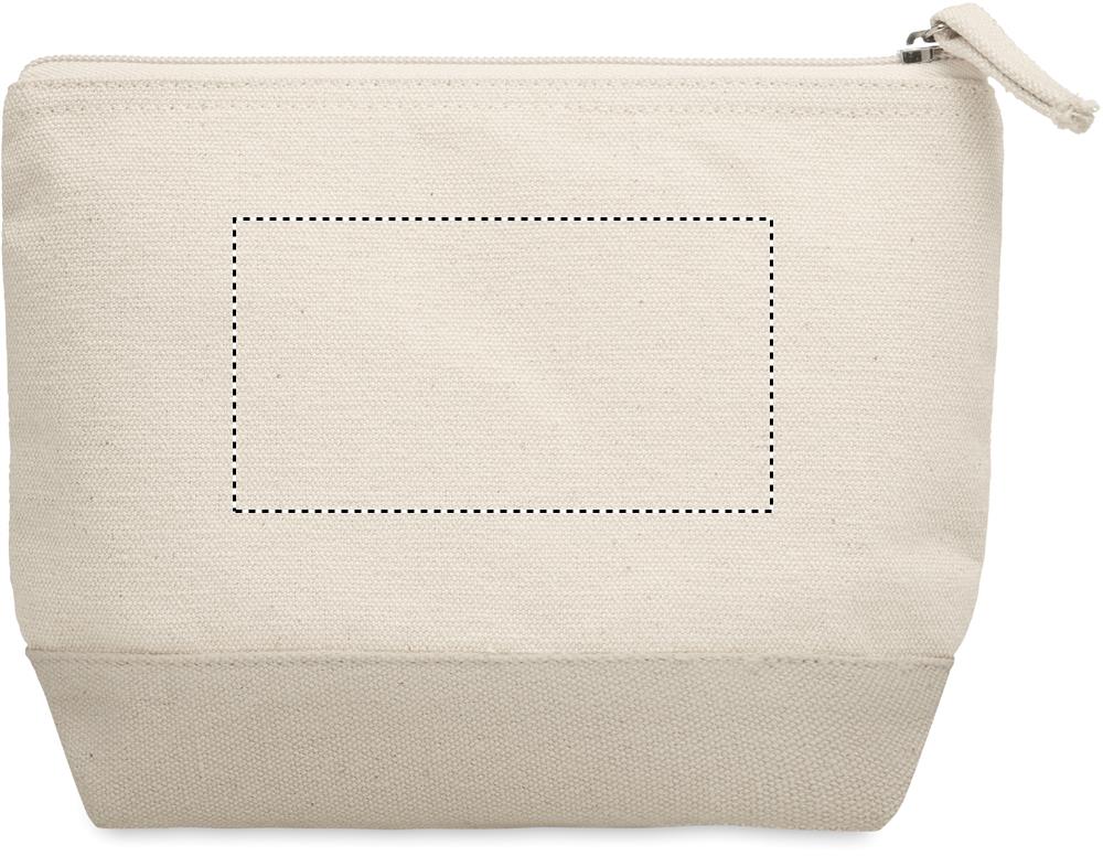 Cosmetic bag in cotton with coloured bottom and matching zipper puller. 340 gr/m².
