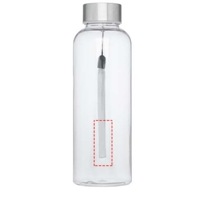 Single-walled water bottle in durable material with screw-on lid. Shatter, stain, and odour resistant. Lid features a strap for easy carrying. BPA free. Volume capacity is 500 ml.
