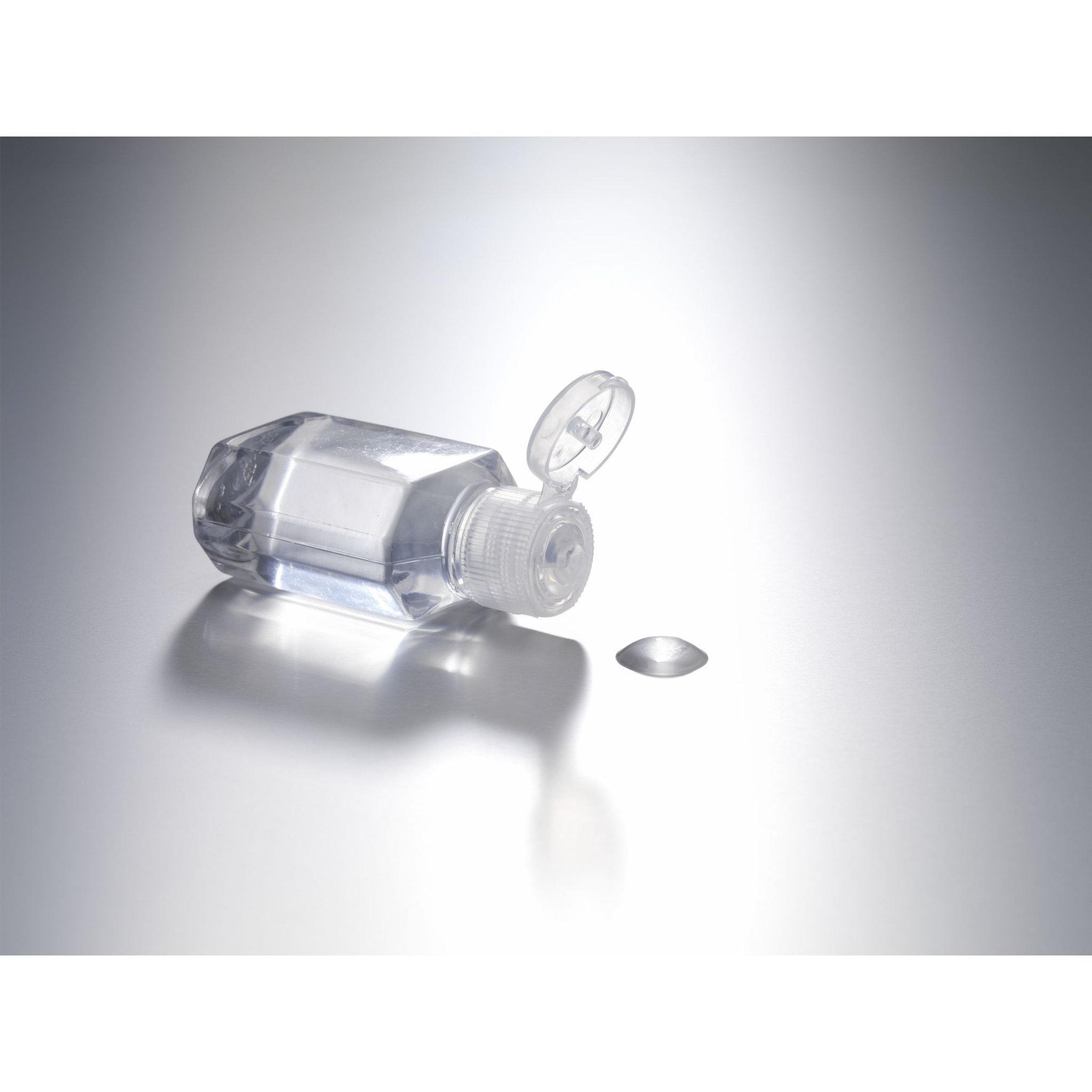This hygienic hand gel helps to clean and care for the hands without water and soap. The gel has a pleasant fragrance and keeps the hands moisturised because of caring ingredients such as Aloe Vera. In a handy transparent plastic (PET) jar with flip-cap. Content 30 ml.