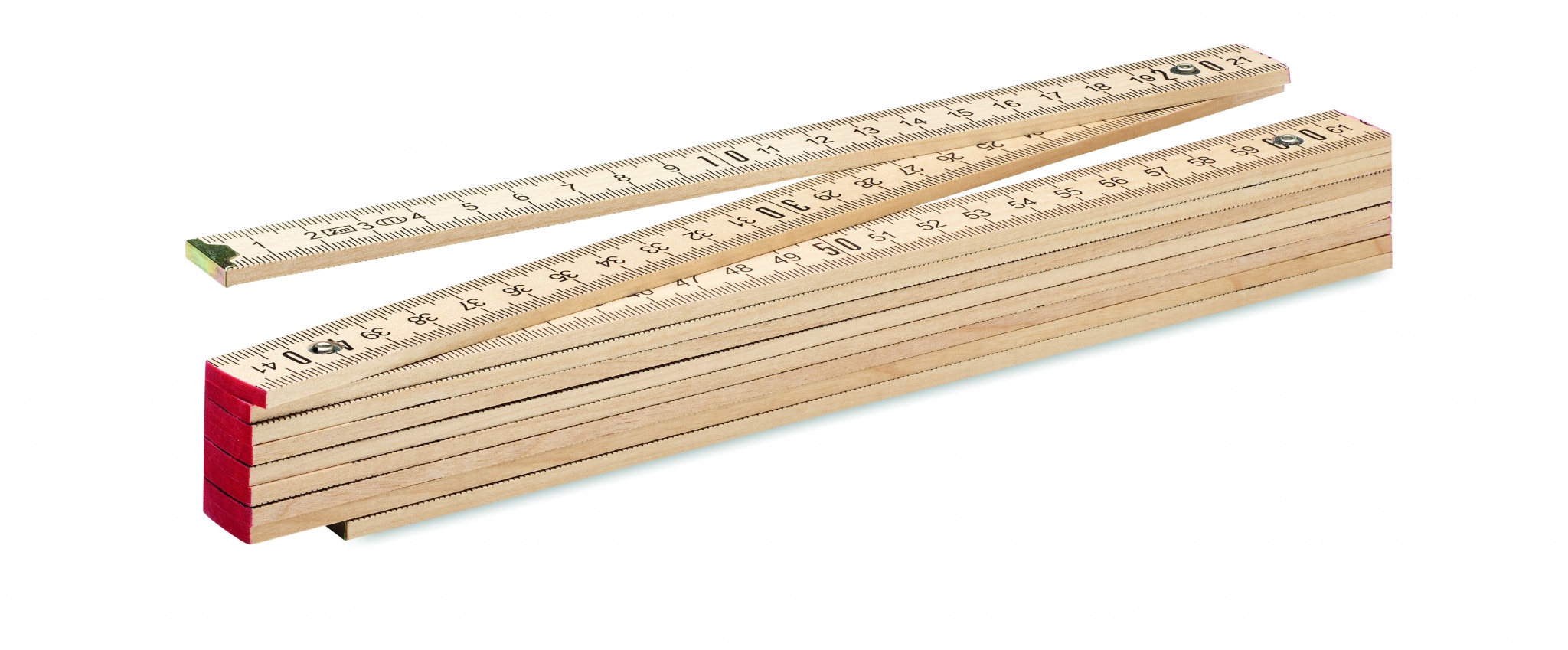 Folding carpenters ruler 2 metre made of Birch wood. Measuring stick in centimetre (cm).