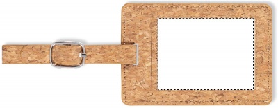 Cork luggage tag. Includes paper 'fill in' information with transparent card. Cork is 100% natural material. Due to its structural nature and surface porosity the final print result per item may have deviations.