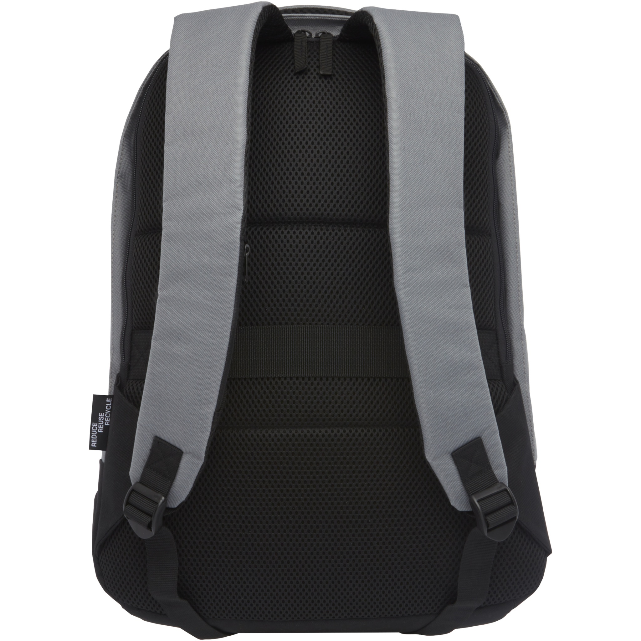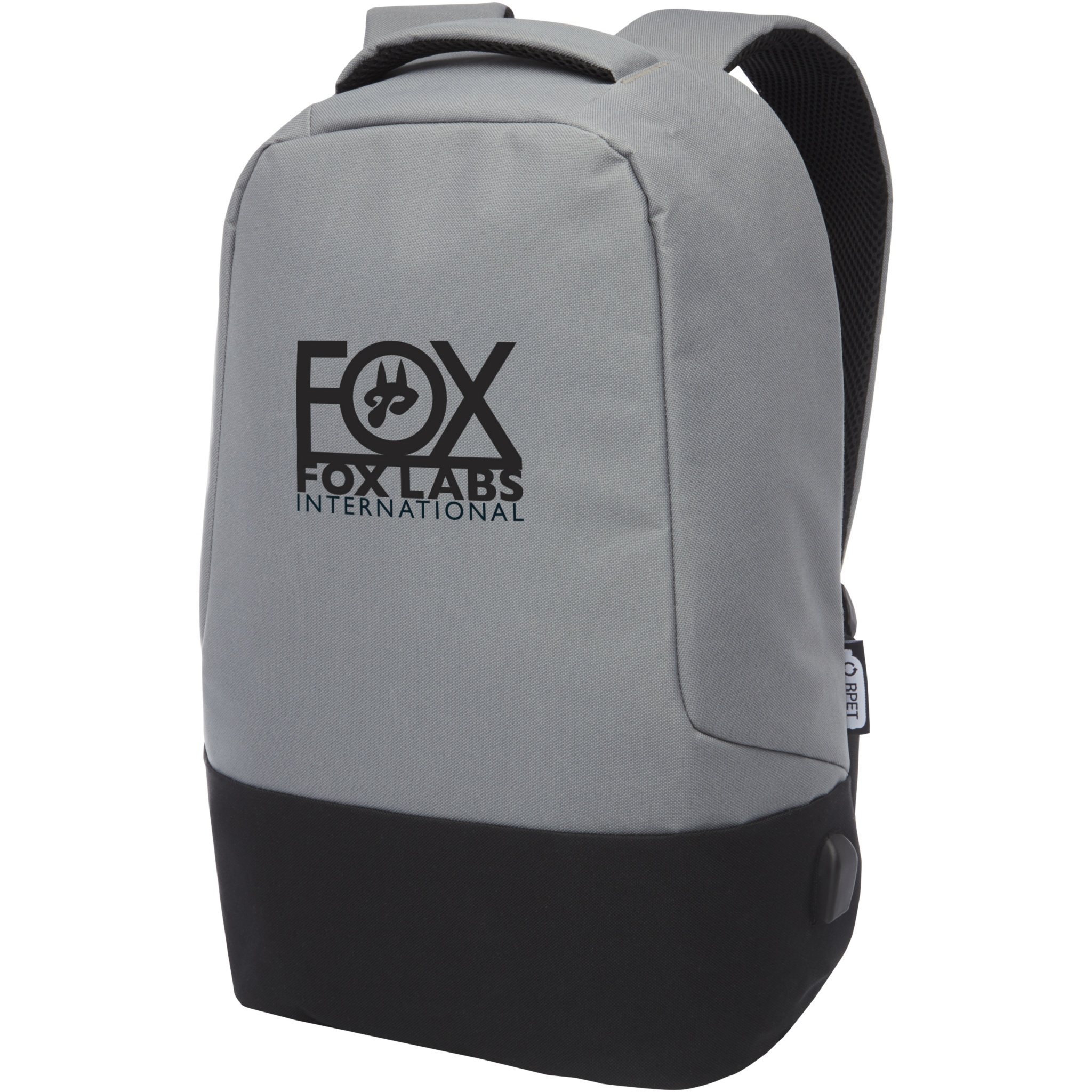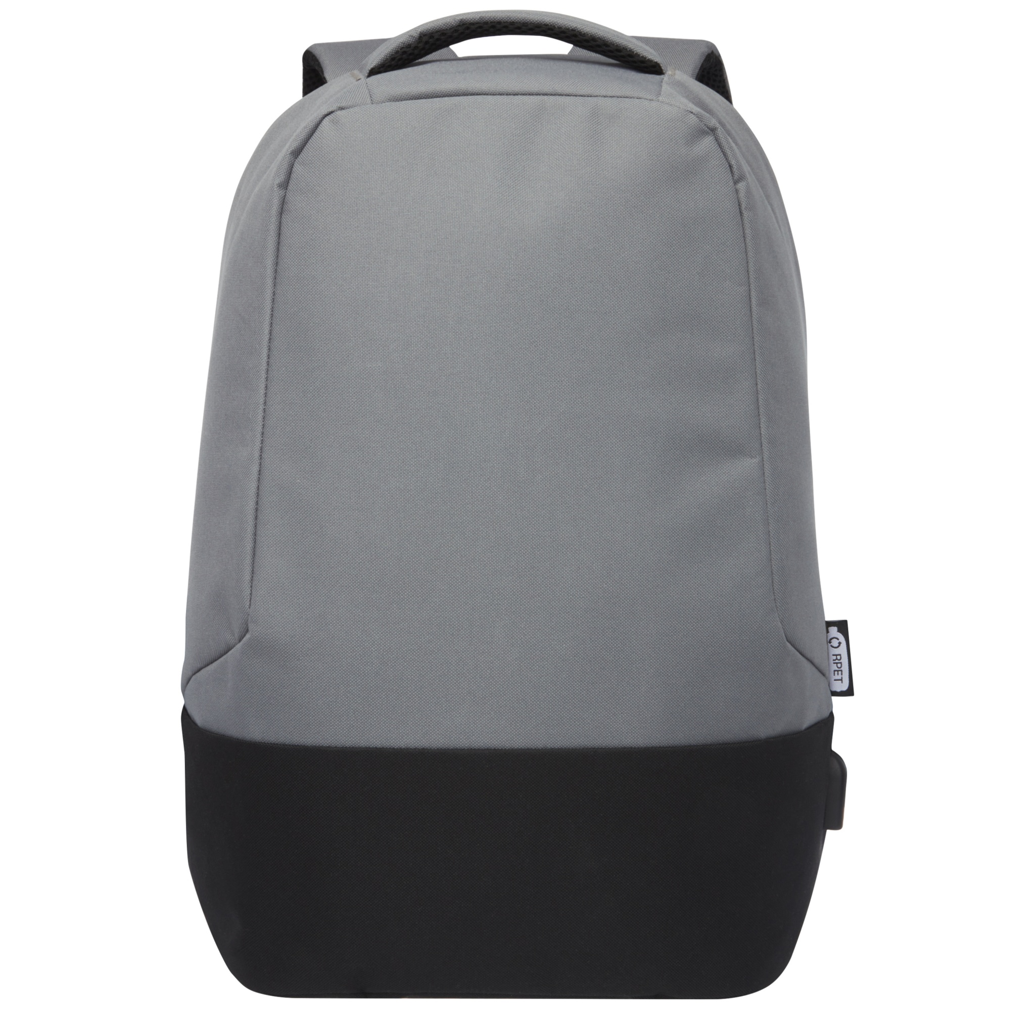 GRS certified backback featuring an open main compartment with organization panel, padded 15" laptop sleeve, and 2 RFID protection pockets. USB port on the right side to easily connect and charge devices from the interior. Comes with padded shoulder straps, right shoulder strap, hidden zipper pocket, grab handle, and a trolley pass-through. Approximately 15 plastic bottles are recycled to make this bag.