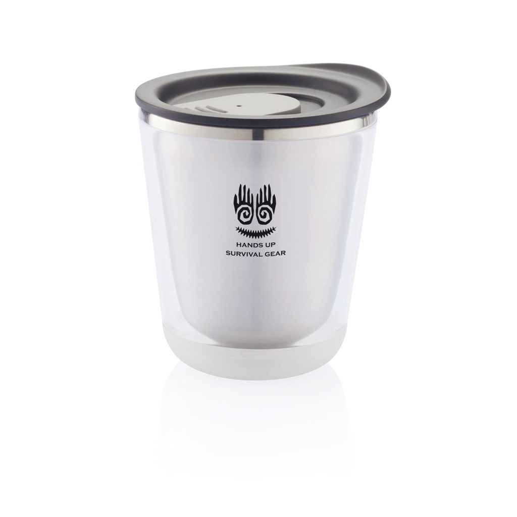 Closable, insulated and compact enough to fit under the coffee machine (227 ml). It is also very hygienic due to the lining of the mug being made out of stainless steel and not plastic. Designed so that the mug is easy to take apart for recycling. Registered design®