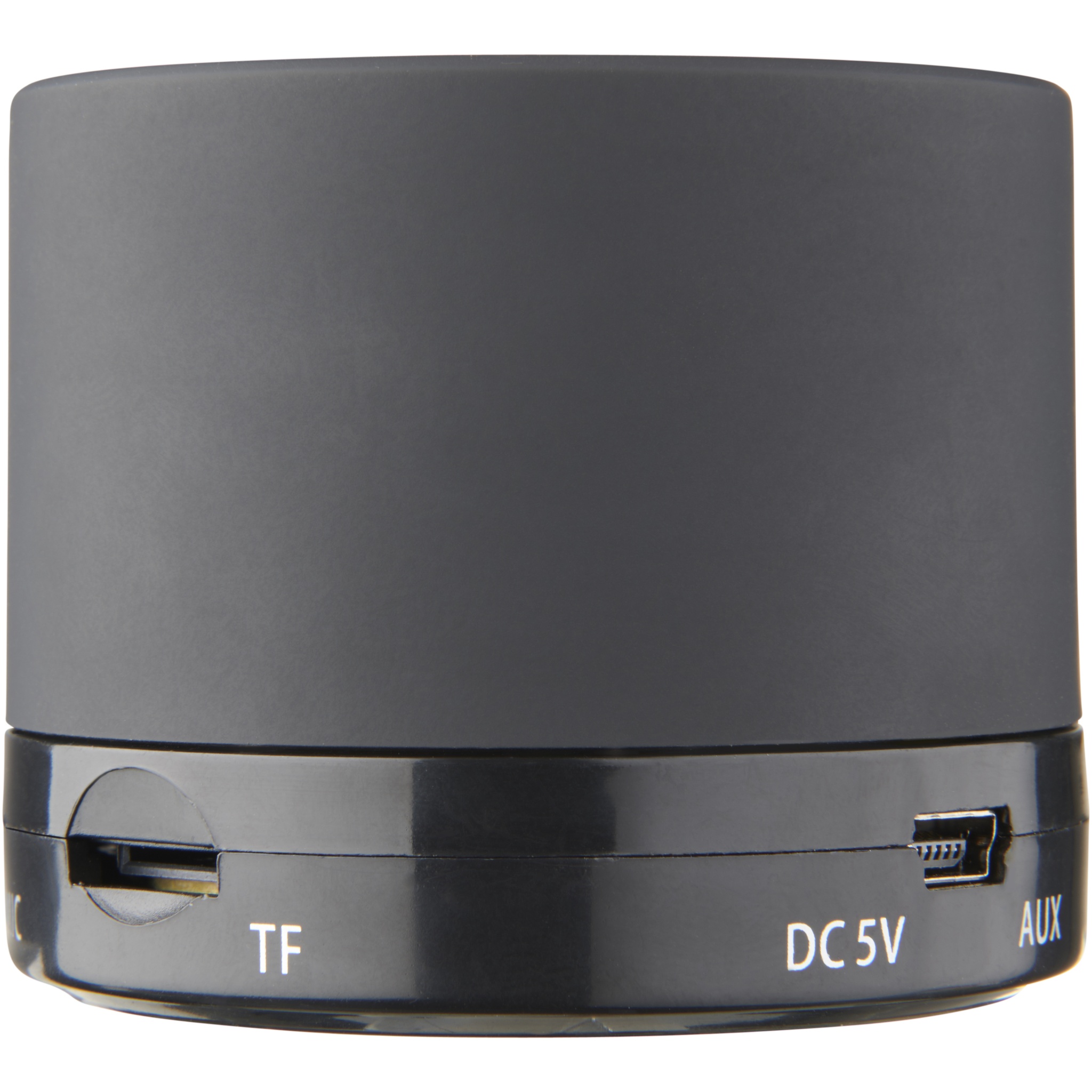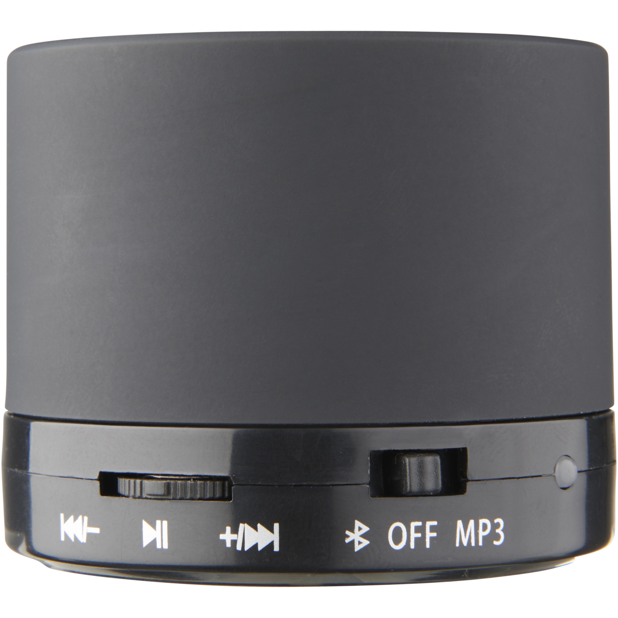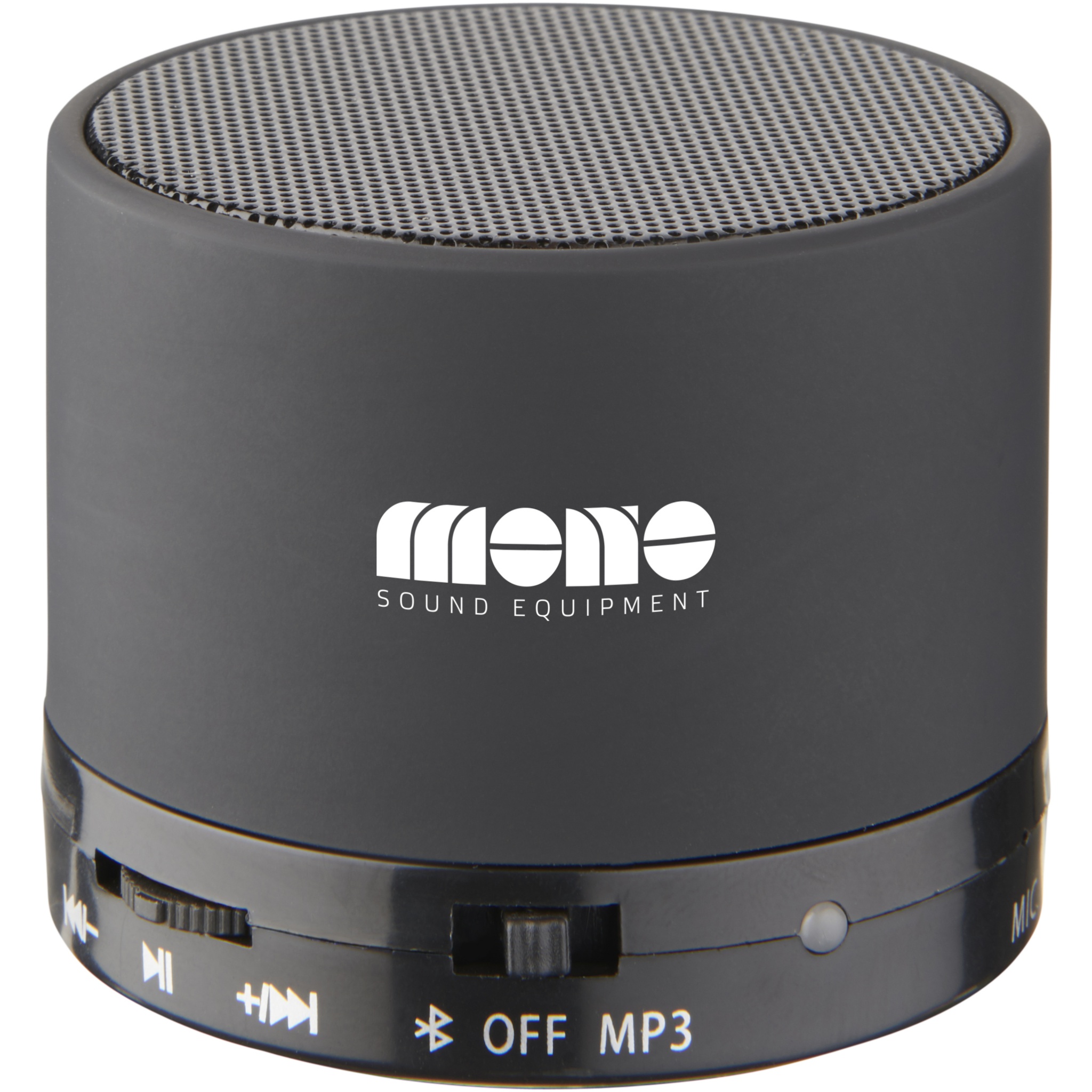 Rubber cylinder speaker. Enjoy music and movies anywhere by pairing your Bluetooth® compatible device like iPhone, iPad or Android OS devices with this portable Bluetooth® speaker (10M range). With the built in microphone, the speaker allows you to conference call on the go through your smartphone or by video chat programs like Skype. Comes with a nice rubberized finish. USB power supply included. .