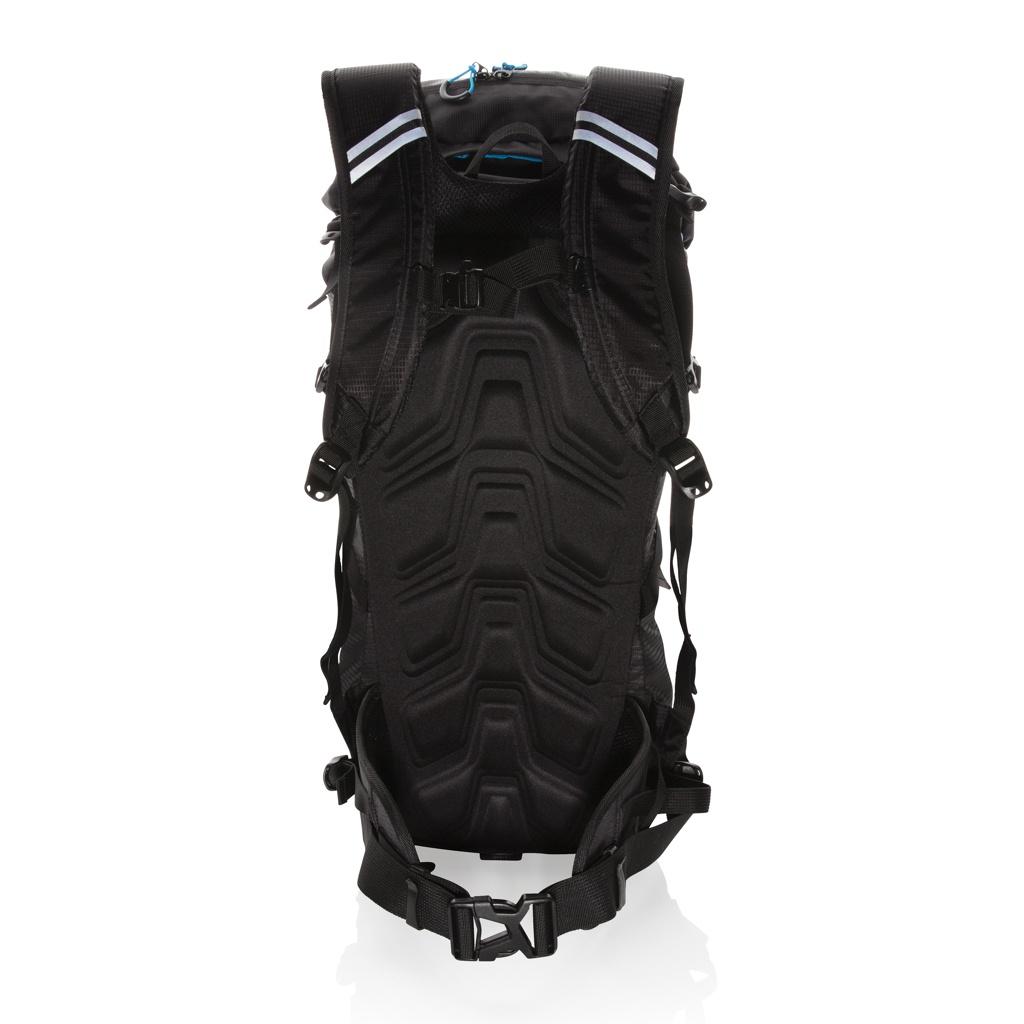 Carry your essentials for casual travel inside this rugged hiking backpack. The hiking backpack is made from durable polyester fabric and features a sporty design. The backpack includes a sleeve that can be used to hold your hydration reservoir or laptop, trekking pole loops, a top stash pocket and an integrated rain cover. Contrast details add a touch of colour and a touch of sporty style to the overall design. PVC free.