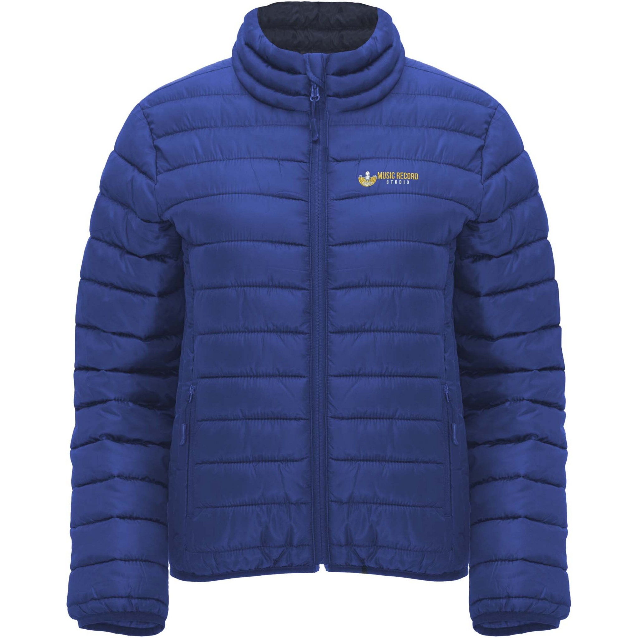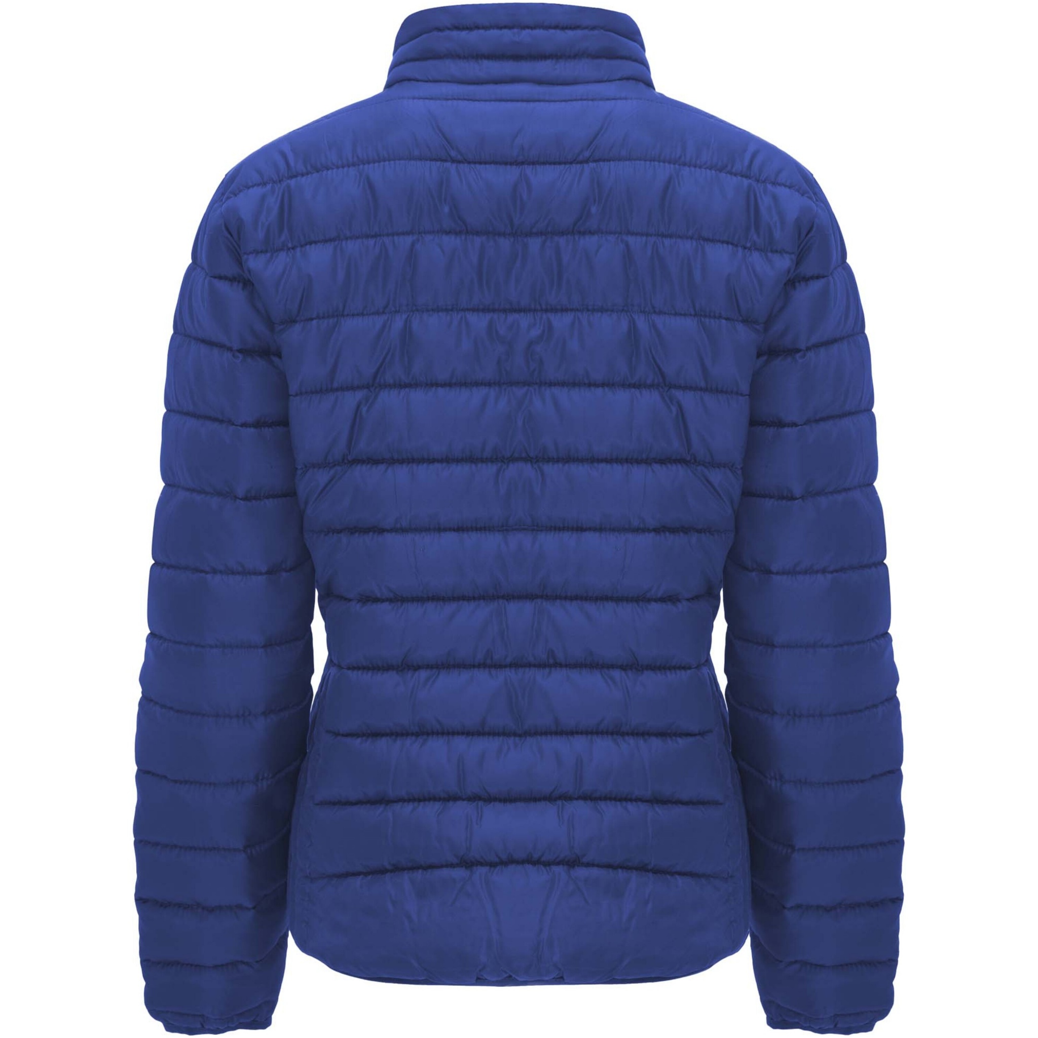 Women's quilted jacket with feather touch padding. Inverted zippers with matching chin protector and puller. Two front pockets with zippers. Matching elastic edging in collar, cuffs and hem. Contrasting inner lining. Includes stow carry bag. Lightweight and foldable garment. Fitted cut. Removable label. Water resistant. Wind-proof. The model is 179 cm and is wearing size S.