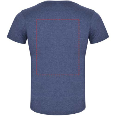 Short-sleeve t-shirt with heathered effect. 1x1 ribbed crew neck with interior reinforced covered seams. Tubular fabric. Removable label.