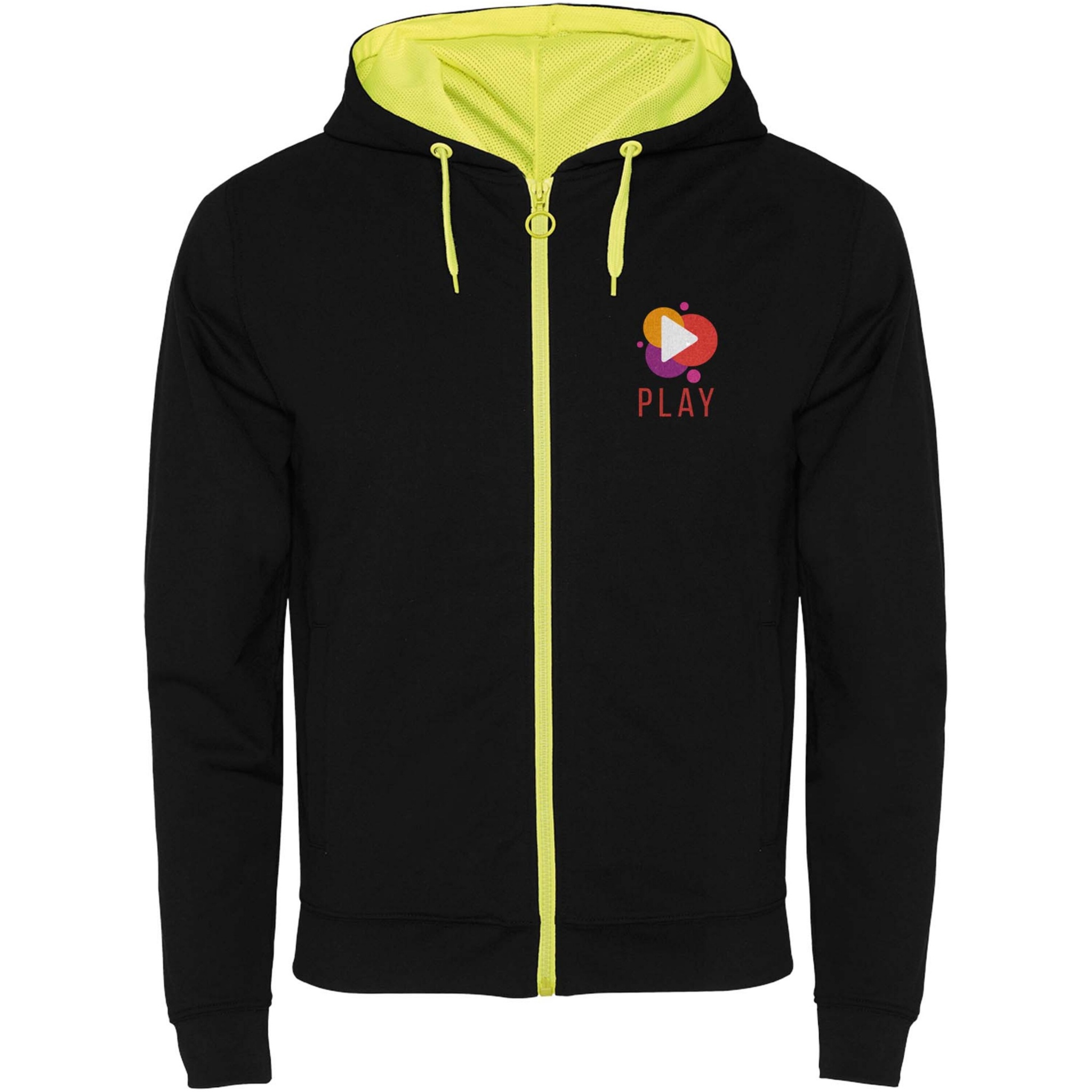 Fuji unisex sweat jacket, Solid black / Fluor Yellow