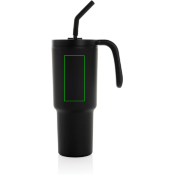 The most popular mug now suitable for perfect 360 round body printing. A 900ml tumbler designed for eco-friendly hydration, made with recycled materials. Whether you're working, exercising, or travelling, this tumbler is your perfect companion. The innovative lid features a rotating cap with three positions: a spill-resistant straw opening, a sipping spout, and a fully sealed lid. The ergonomic handle with comfort-grip inserts ensures easy carrying, and the slim base fits most car cup holders. Hand wash only. BPA-free. Capacity: 900ml. Includes FSC®-certified kraft gift packaging. Total recycled content: 36% based on total item weight.