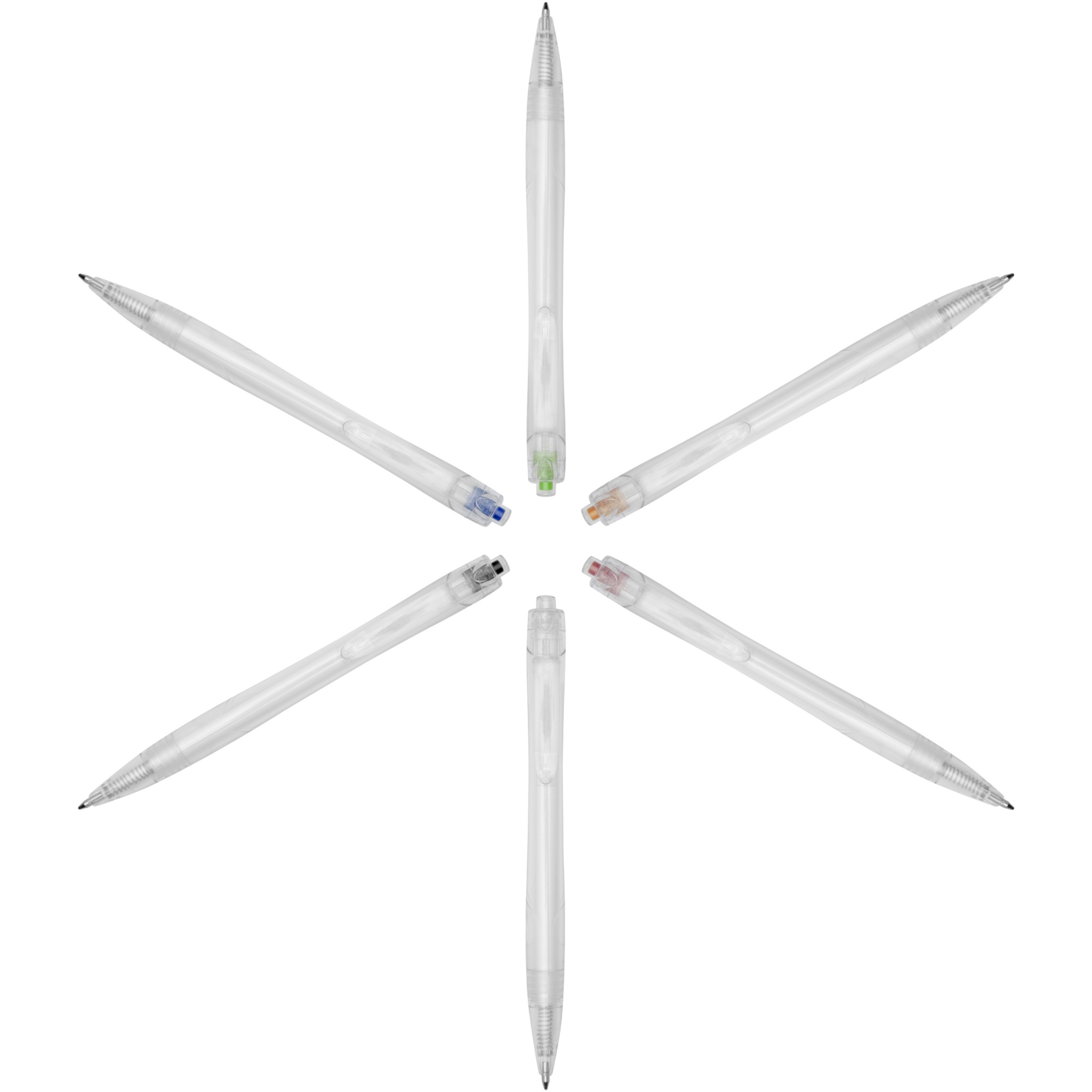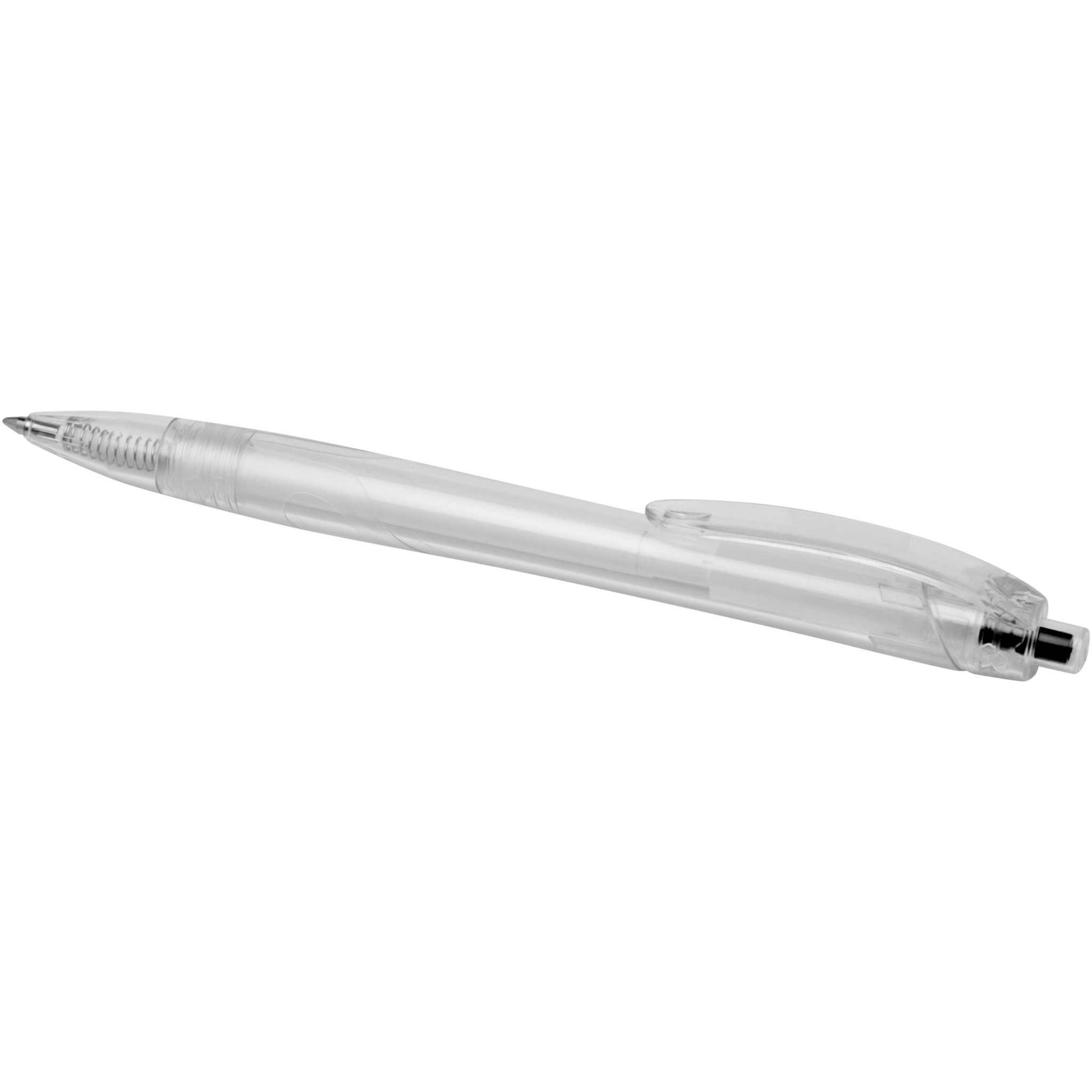 Click action ballpoint pen made from recycled PET, reducing the use of virgin plastic. The ballpoint pen comes with a transparent barrel and coloured push button. It is preloaded with a blue refill and can be combined with the 107763 Honua RPET notebook.