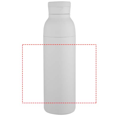 Double-walled, vacuum-insulated, RCS certified stainless steel water bottle featuring a discreet built-in silicone handle within the lid. The two-piece construction makes cleaning easy, while the durable powder coating and copper plating ensure long-lasting performance. Presented in a recycled cardboard gift box. Volume capacity: 650 ml.