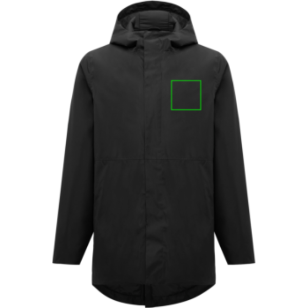 Unisex padded waterproof parka, made from 100% recycled polyester. The jacket is 3.000 mm waterproof, breathable and wind resistant. It has all features of a classic parka: longer back length, back slit, 2-way CF reversed zipper, covered by an extra front placket with four hidden snaps, clean sleeve cuffs with an extra inside half cuff, hood with stoppers at inside collar, horizontal deco seams. It is padded with 100% recycled polyester sheets and is lined with fine taffeta. On the inside there is a hidden zip at bottom hem and left wearer’s chest for easy decoration. Full garment is stitched with recycled polyester sewing thread. At back neck there is a tear-off size label with an iqoniq craft hangtag, care label at the left inside side seam. The use of genuine recycled fabric material and environmental impact claims are guaranteed, by using the AWARE™ disruptive physical tracer and blockchain technology. By scanning the QR code, you will gain access to a dedicated digital passport.