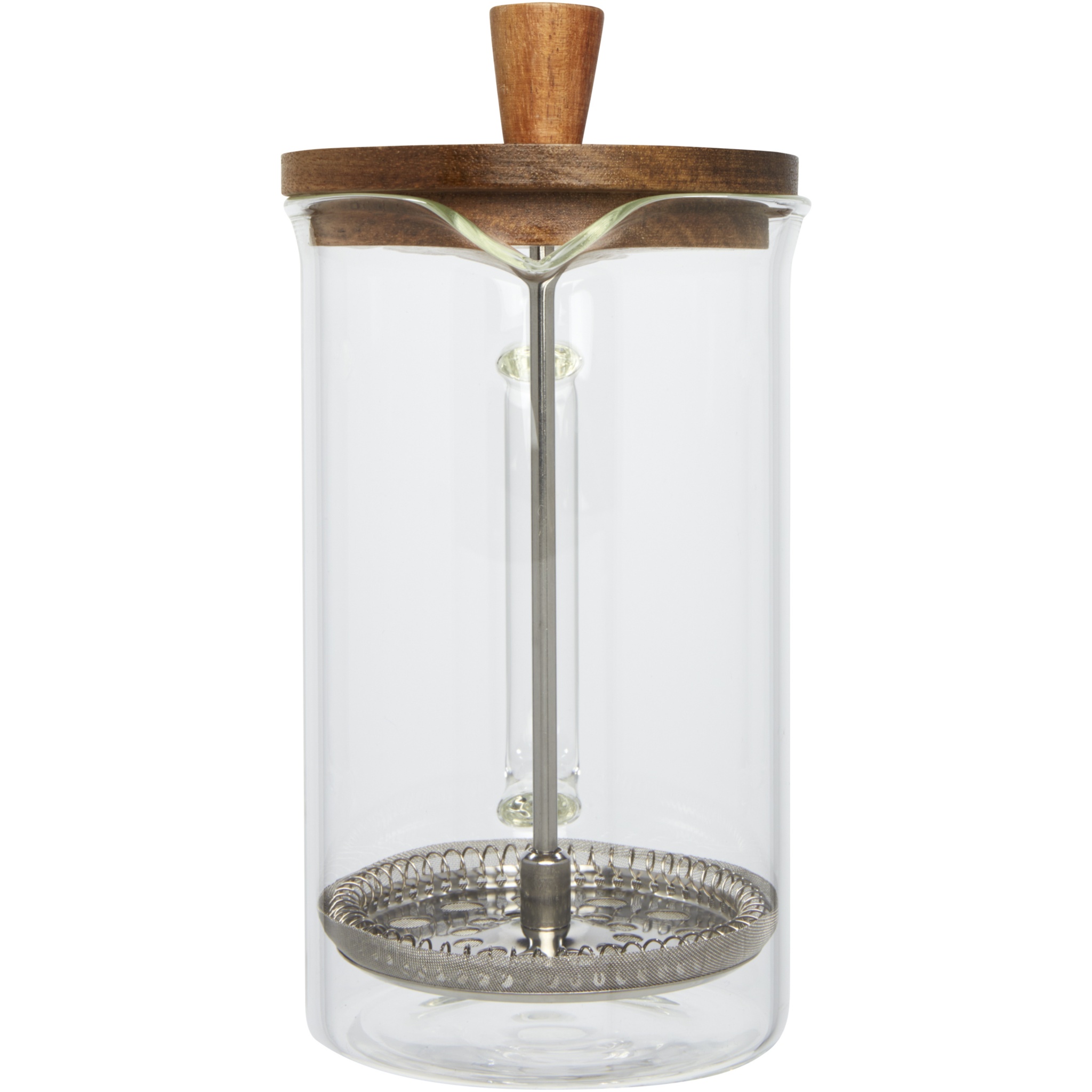 French press with elegant design and acacia wood lid which is from sustainable, environmentally, and socially responsible sources. Volume capacity is 600 ml. Prepare your freshly brewed 3 cups of coffee in just a few minutes. Add coarse ground coffee to the glass jug. Fill with hot water and let it infuse to your own taste. Slowly press the flask down. Your coffee is ready! In addition, you can also prepare tea, hot chocolate, milk, fruit tea, and lemonade. The borosilicate glass makes your French press not only a real eye-catcher in your kitchen but also very essential for your adventures and outings.