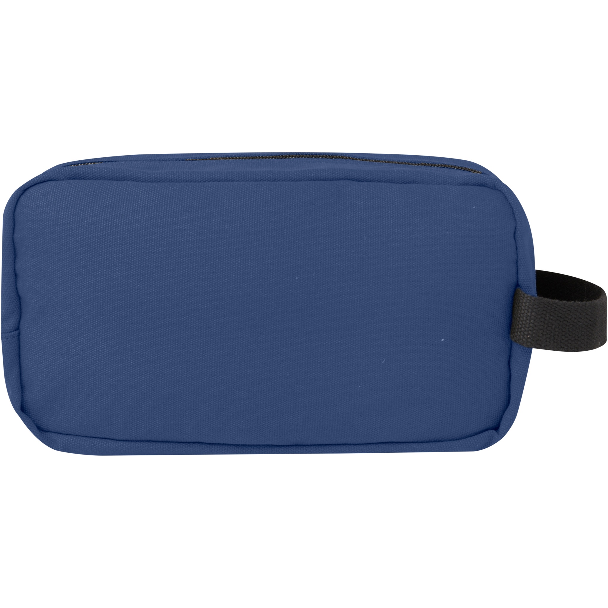 Travel accessory pouch made of GRS certified recycled canvas and GRS certified RPET lining. Featuring a zippered front pocket and one zippered main compartment with organisational pockets, and a comfortable webbing. The decorative metal plate can make a logo shine through its subtle and matt finish. Capacity: 3.5 litres.