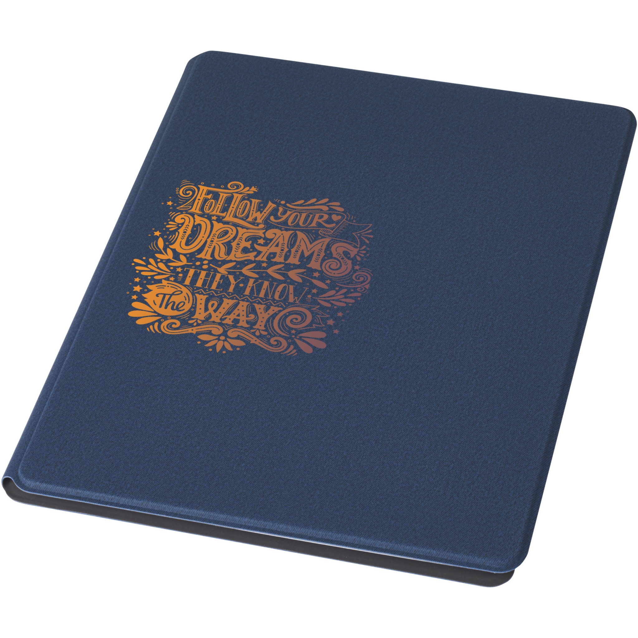 The RCS certified Kunveno portfolio is partly made from post-consumer polyester, making this portfolio a more sustainable choice since it helps to reduce the use of virgin raw material. Featuring a magnet closure and 20 white lined sheets with 80 g/m2 recycled paper from sustainable sources.