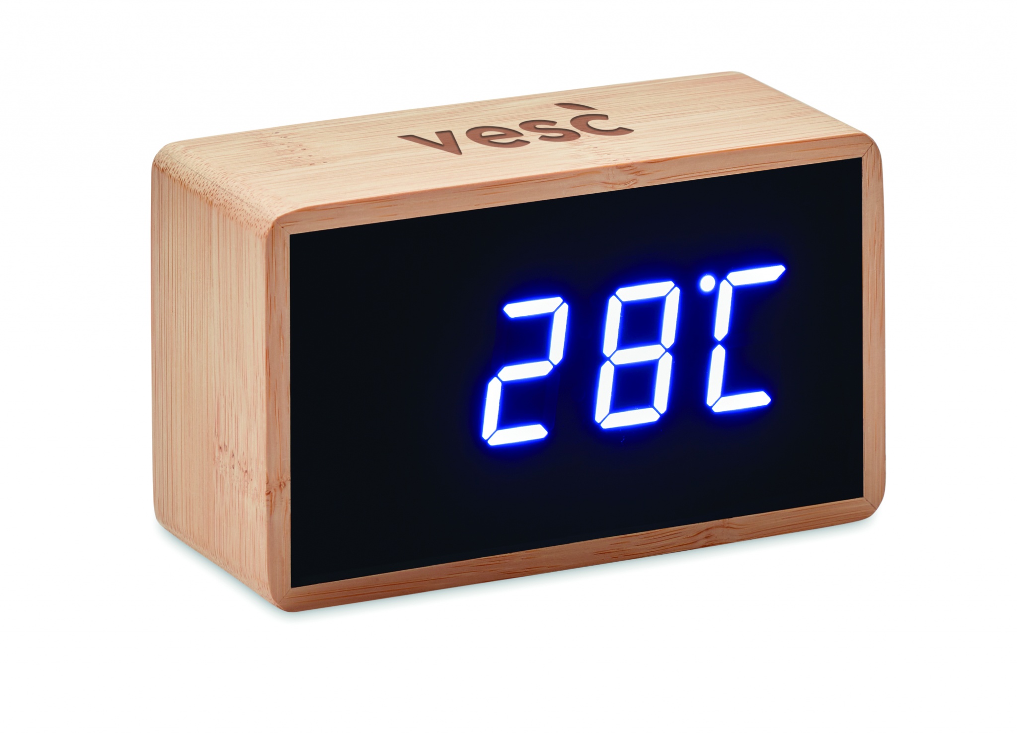 Logo trade business gifts image of: LED alarm clock bamboo casing Düsseldorf
