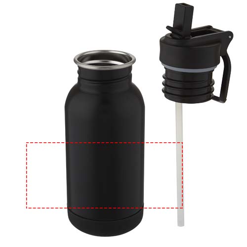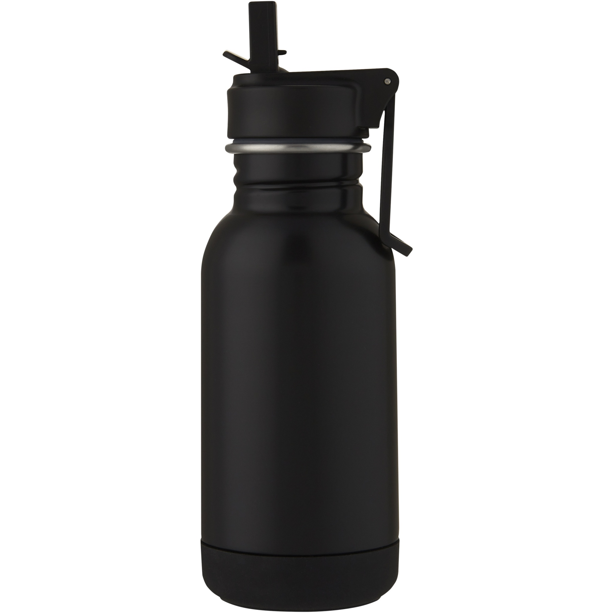 Lina 400 ml stainless steel sport bottle with straw and loop, Solid black