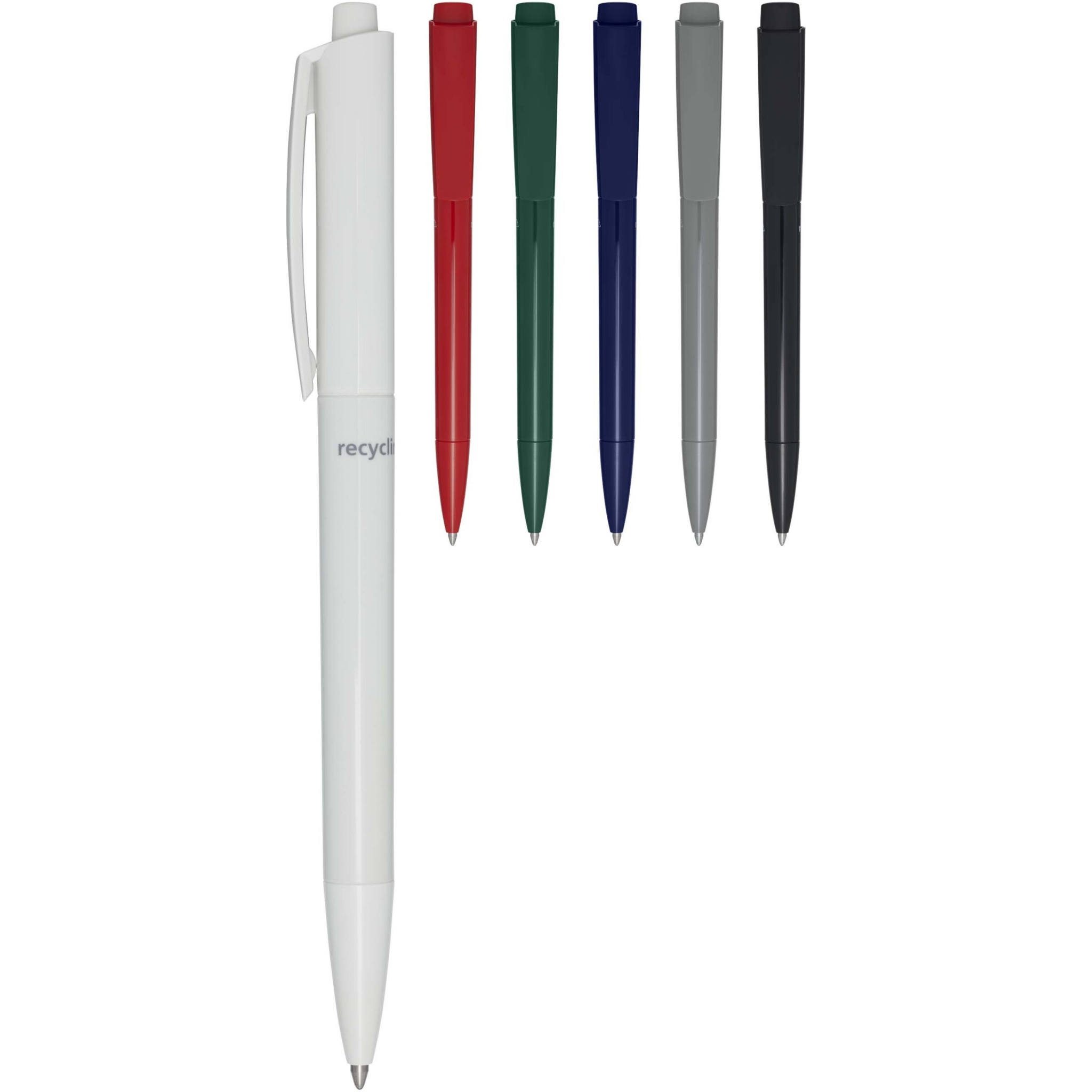 Ballpoint pen with the barrel and clip made of recycled plastic, and the tip made of stainless steel. Ink colour: Black. Writing length: 3000 metres. Nib size: 1.00 mm. Made in Germany.