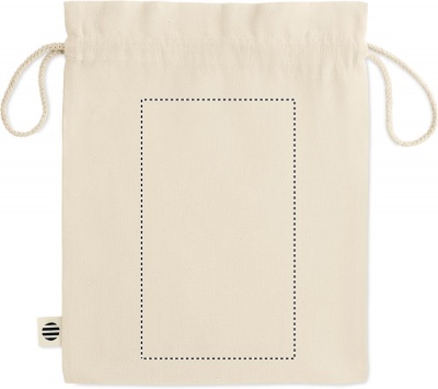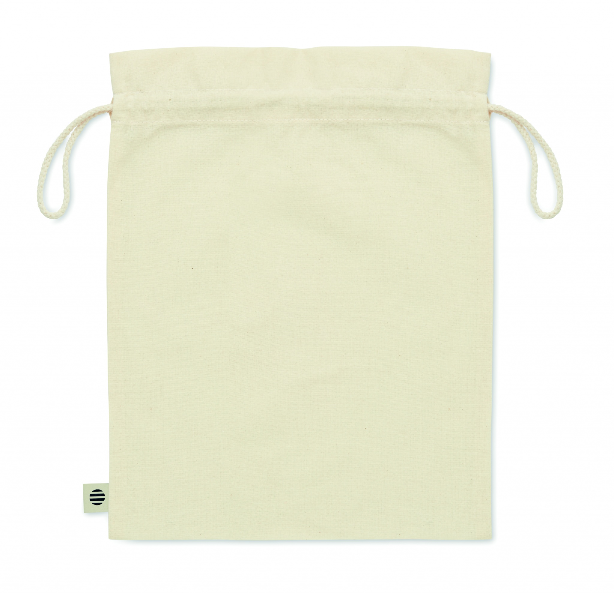 Medium gift draw cord bag in organic cotton. Size approx. 25 x 32 cm. 105 gr/m².