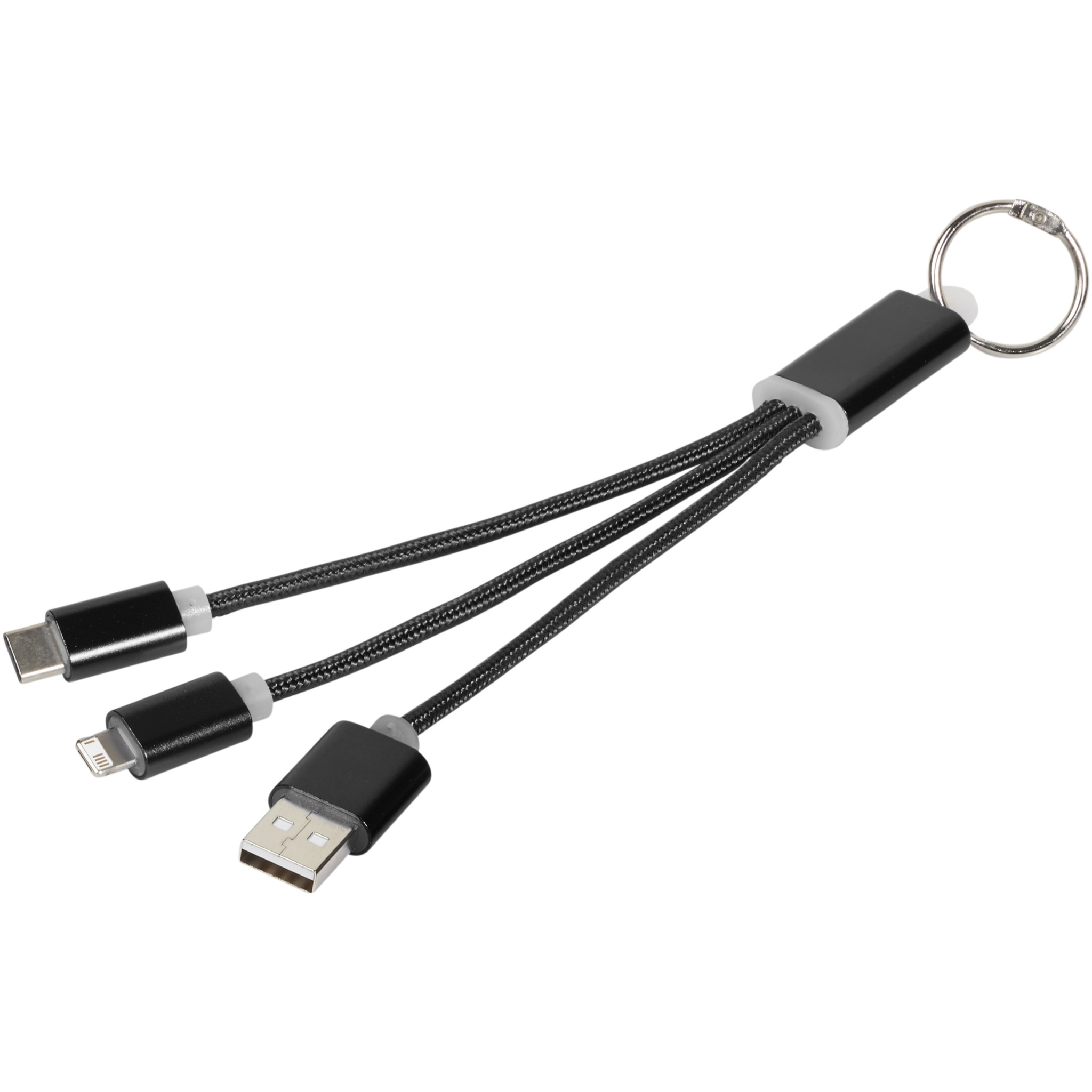 Logo trade promotional giveaway photo of: Metal 3-in-1 charging cable with keychain