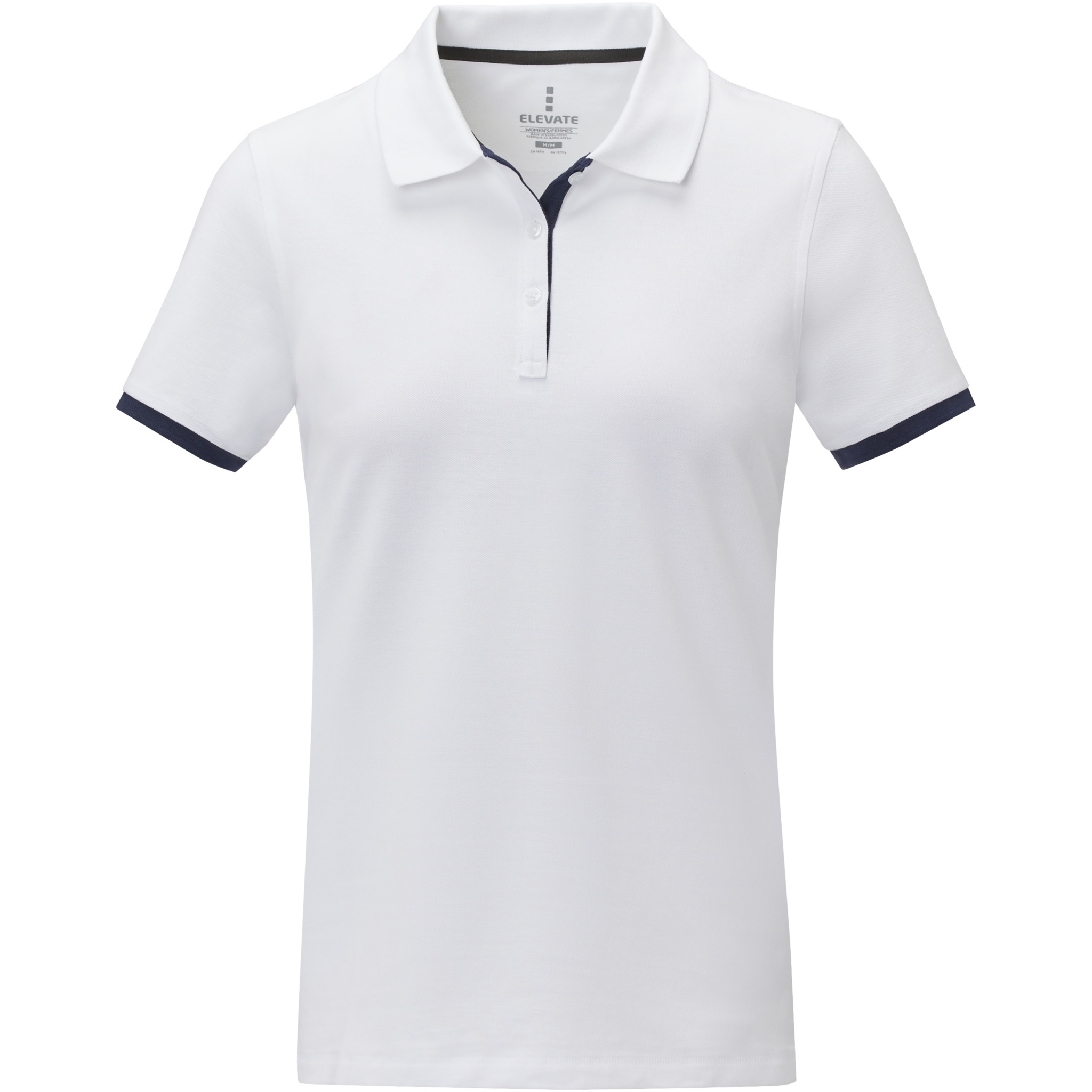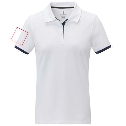 The Morgan short sleeve women's duotone polo is a stylish and comfortable option for any casual or business setting. Made from a 200 g/m² piqué knit cotton fabric, this polo is both durable and breathable. Featuring a flat knit collar and rib cuffs with contrast colour detailing, this polo offers a modern twist on a classic design. The two-button placket and pick-stitch details add an extra touch of sophistication, and the satin neck tape and heat transfer main label provide comfort and ease of wear. This polo is designed with a fitted shape for a feminine look.