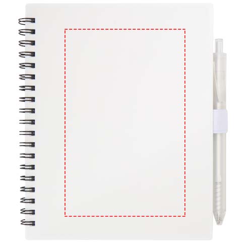 Niove recycled plastic soft cover notebook and ballpoint pen set (blue ink), White